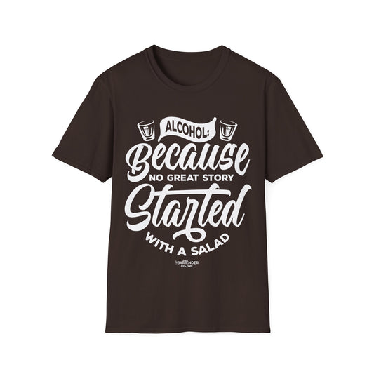 "Alcohol Because No Great Story Started with Salad" Men's Bartender Tee