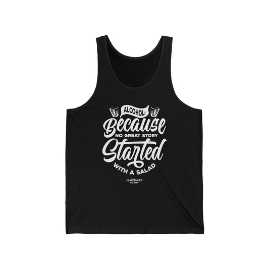 "Alcohol Because No Great Story Started with Salad" Men's Bartender Tank
