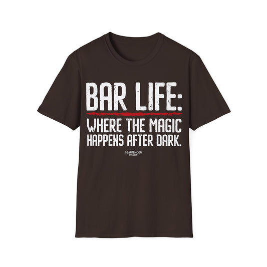 "Bar Life Where the Magic Happens After Dark" Men's Bartender Softstyle T-Shirt