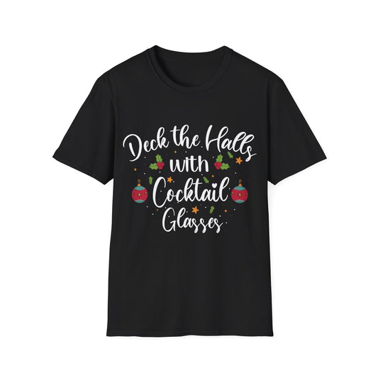 "Deck the Halls with Cocktail Glasses" Unisex Softstyle T-Shirt