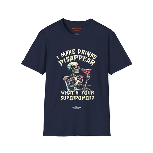 "I Make Drinks Disappear Whats Your Superpower" Halloween Bartender Softstyle T-Shirt