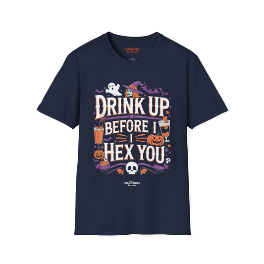 "Drink up Before I Hex You" Halloween Bartender Softstyle T-Shirt