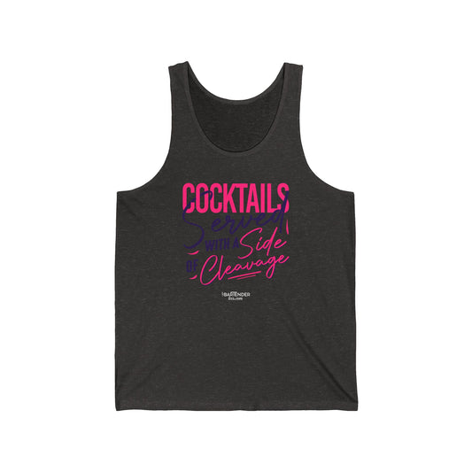 "Cocktails served with a side of cleavage" Men’s Bartender Tank Top