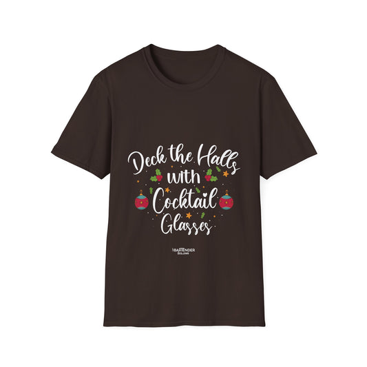 "Deck the halls with cocktail glasses" Men's Bartender Softstyle T-Shirt