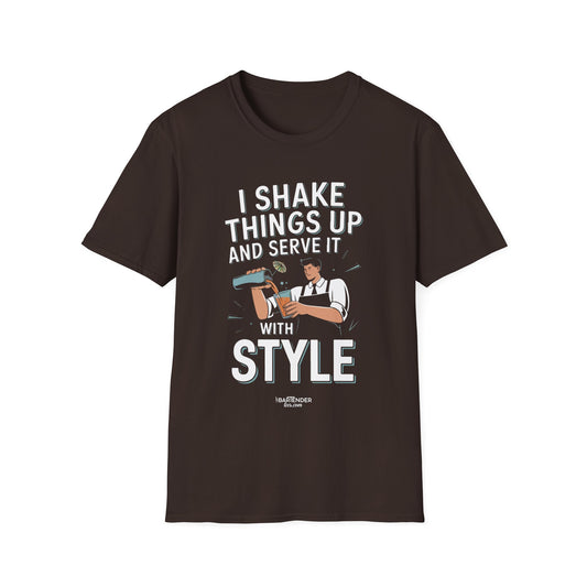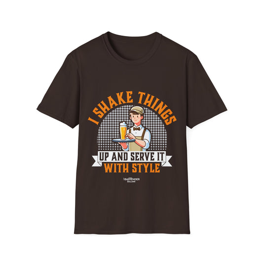 "I shake things up and serve with style" Men's Bartender Softstyle T-Shirt