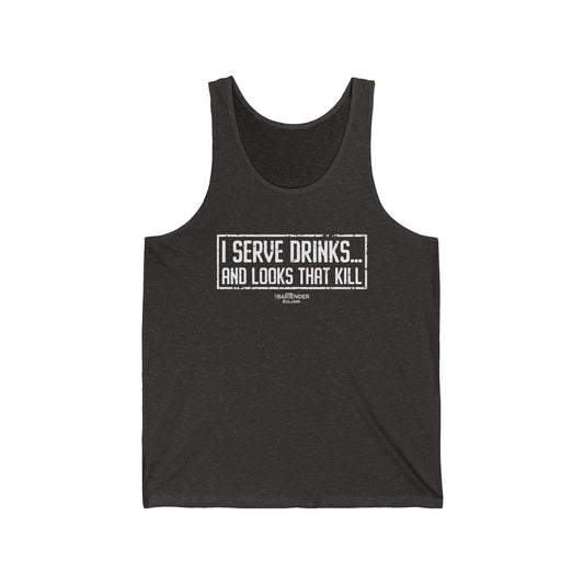 "I serve drinks and looks that kill" Men’s Bartender Tank Top