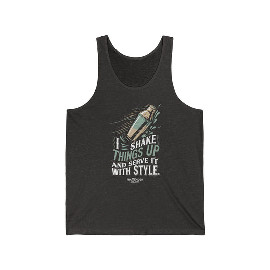 "I shake things up and serve it with style" Men’s Bartender Tank Top