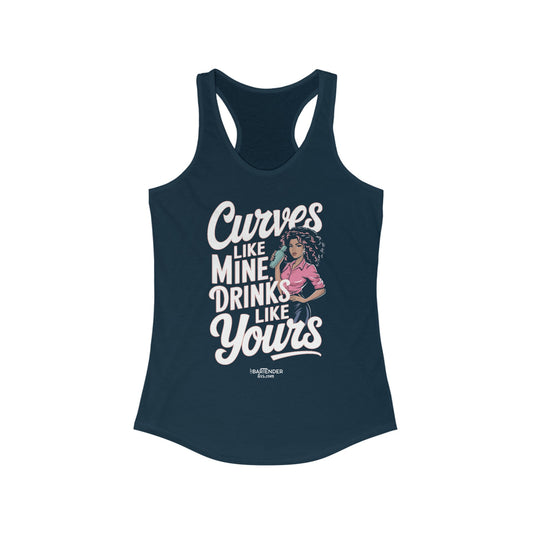 "Curves like mine drinks like yours" Women's Bartender Tank Tops