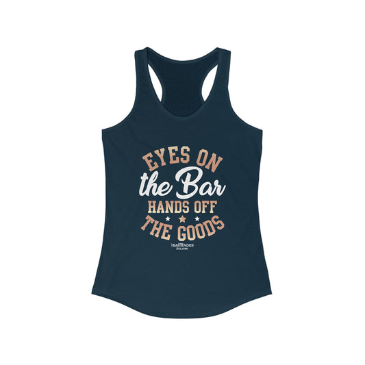 "Eyes on the bar hands off the goods" Women's Bartender Tank Tops
