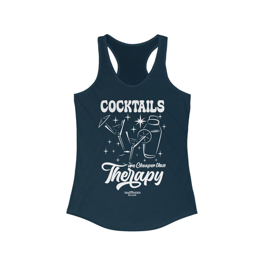 "Cocktails are cheaper than therapy" Women's Bartender Tank Tops