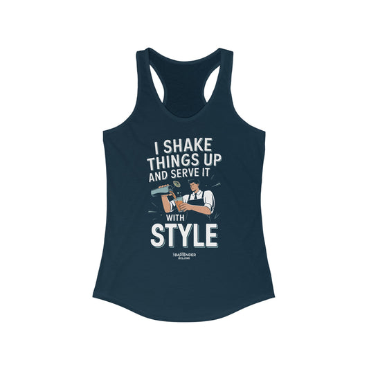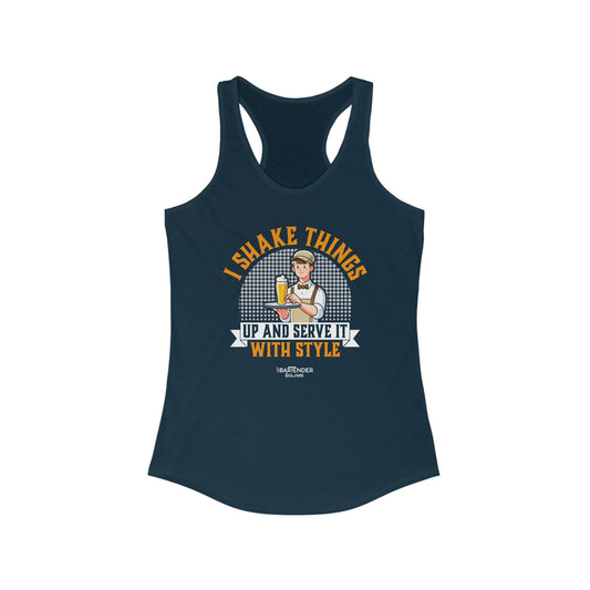 "I shake things up and serve it with style" Women's Bartender Tank Tops