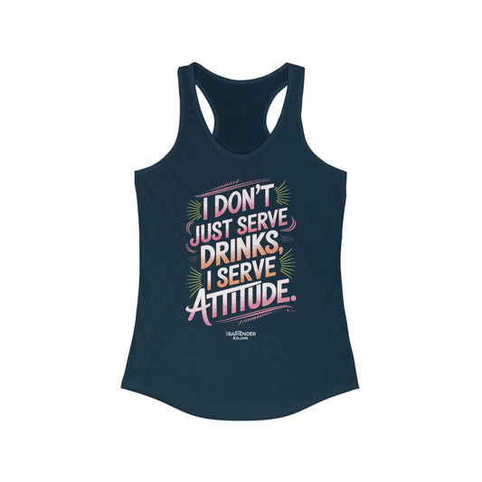 "I dont just serve drinks I serve attitude" Women's Bartender Tank Tops