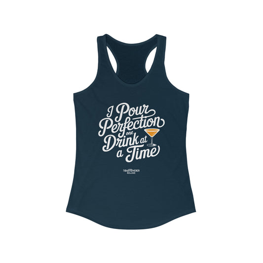 "I pour perfection one drink at a time" Women's Bartender Tank Tops