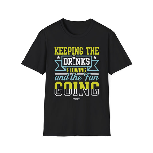 "Keeping the Drinks Flowing and the Fun Going" Unisex Softstyle T-Shirt