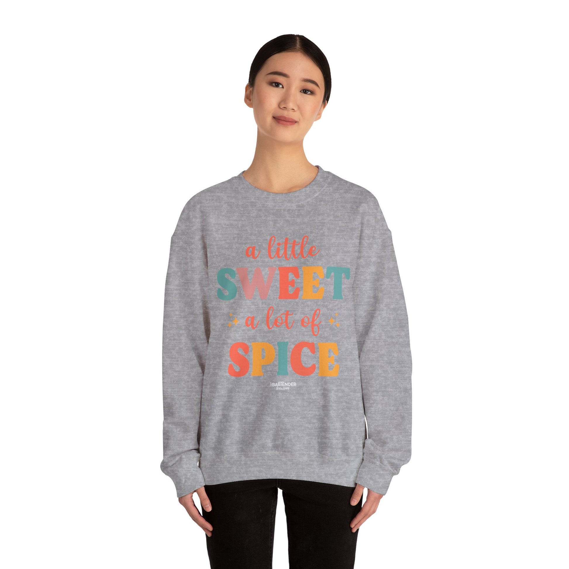 Show off your personality behind the bar with this fun and vibrant sweatshirt! Featuring the playful phrase, "A Little Sweet, A Lot of Spice," this sweatshirt is perfect for bartenders who know how to balance charm with sass. Made from soft, comfortable fabric, this eye-catching design in bold colors is sure to stand out during your shift or a night out. Whether you're mixing drinks or making friends, this sweatshirt says it all. Available in a range of sizes, it's a great addition to any bartender’s wardrobe!