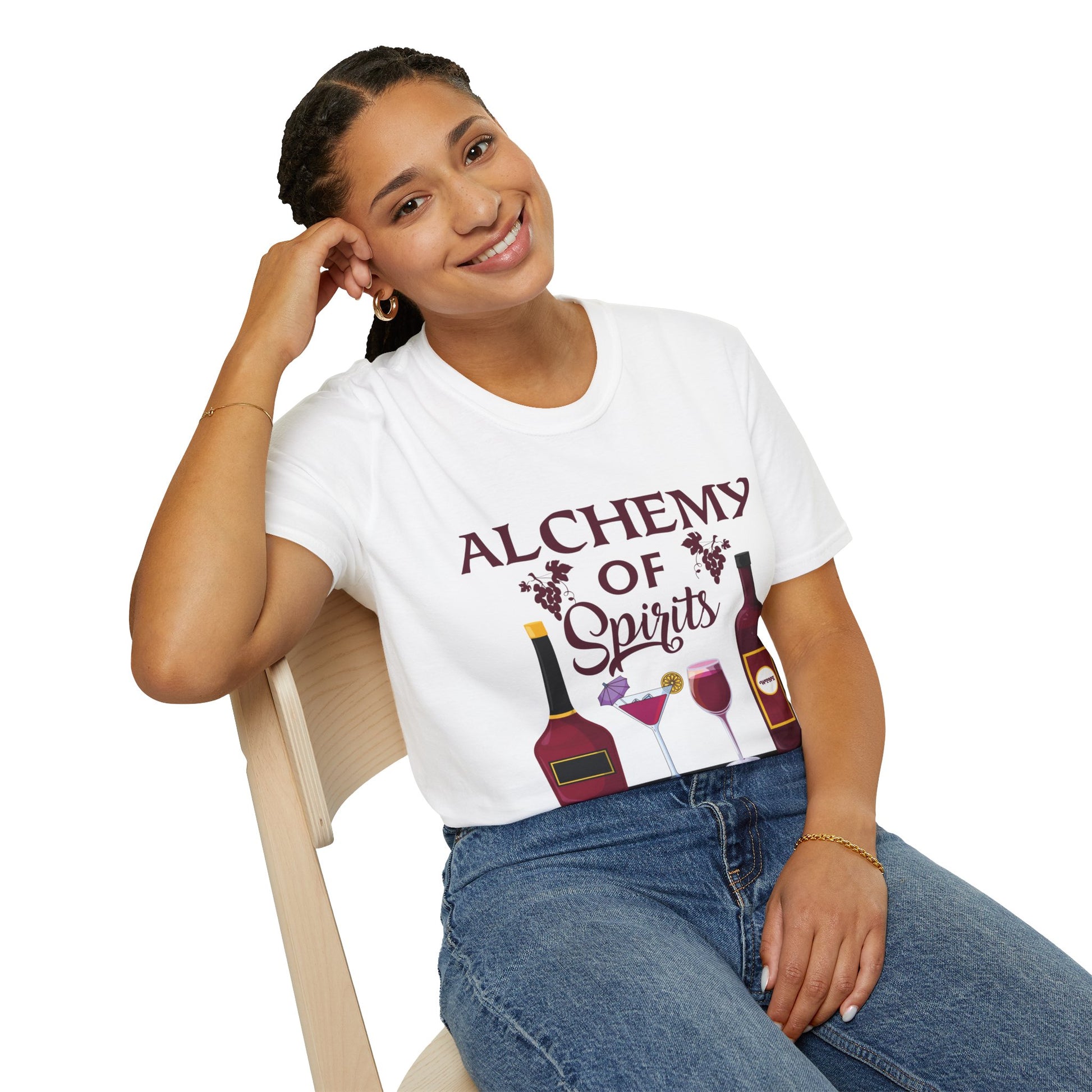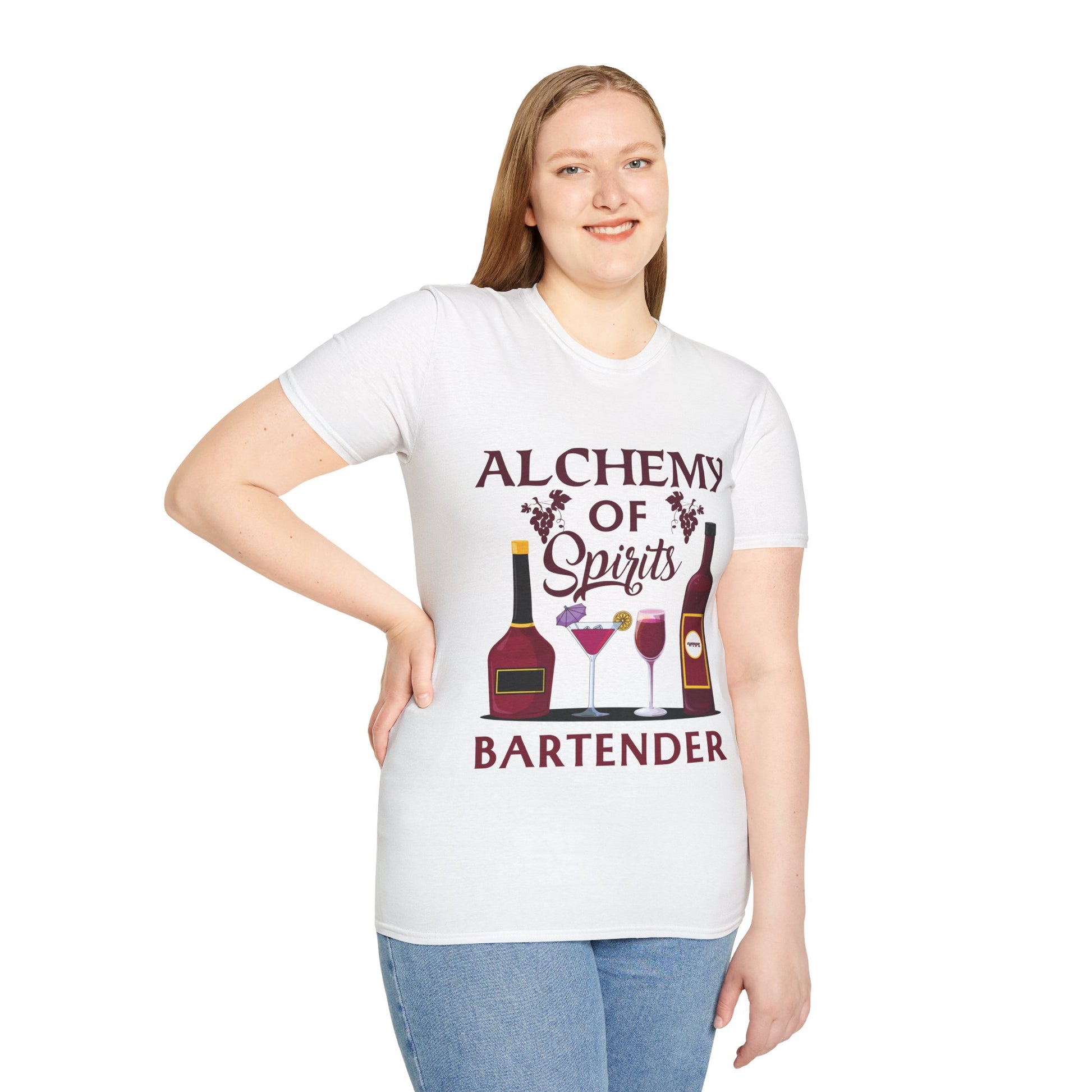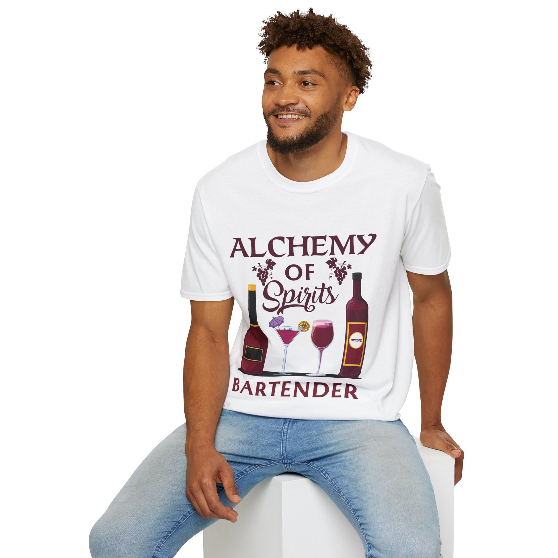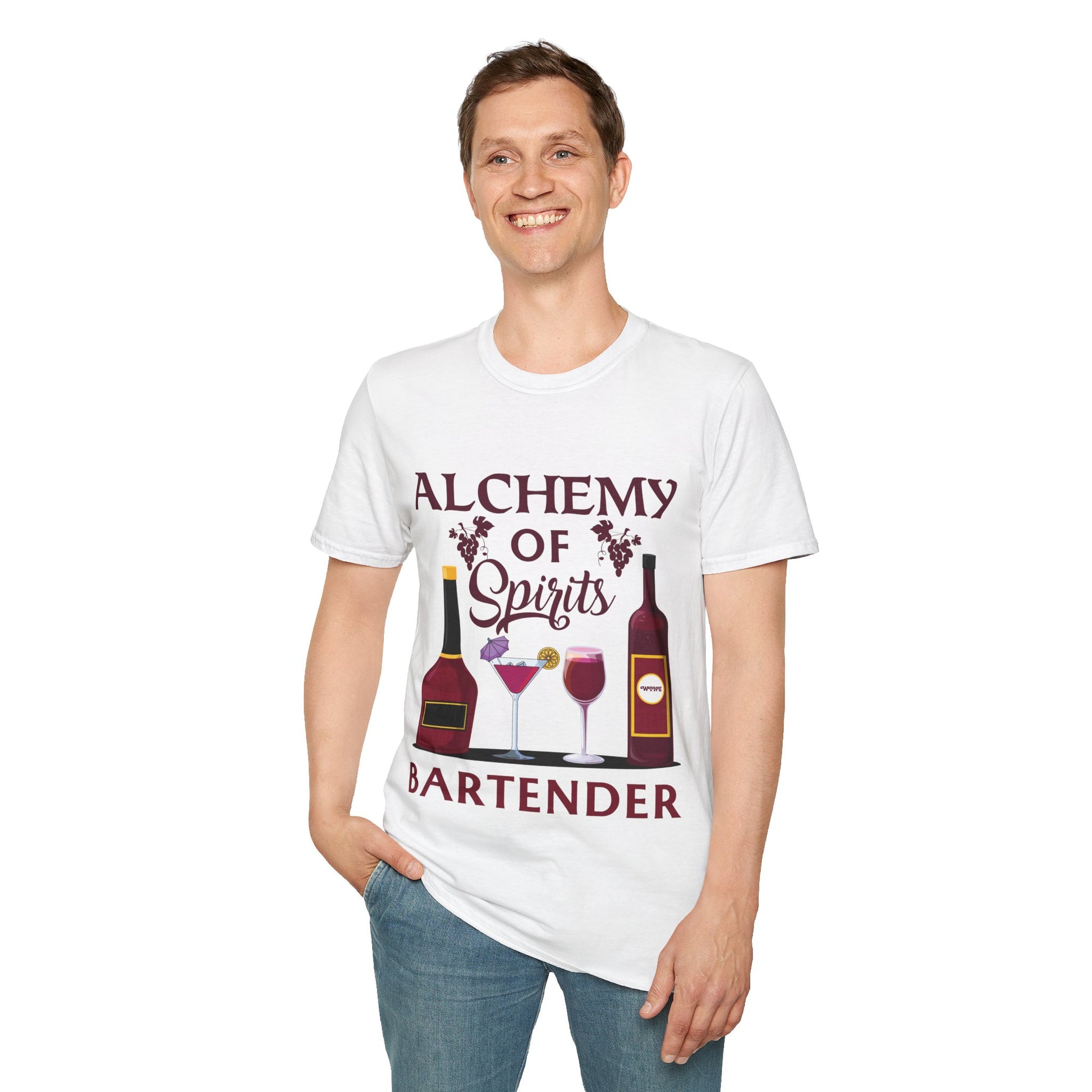 Unleash the magic of mixology with this stunning "Alchemy of Spirits" shirt! Perfect for bartenders, mixologists, and cocktail enthusiasts, this design captures the artistry behind every drink crafted. Featuring elegant bottles, wine glasses, and a vibrant cocktail, it's a celebration of the true art of bartending. Whether you're behind the bar or out for drinks, this tee is a great conversation starter and a stylish tribute to the world of spirits. Elevate your bartender wardrobe with a touch of alchemy!