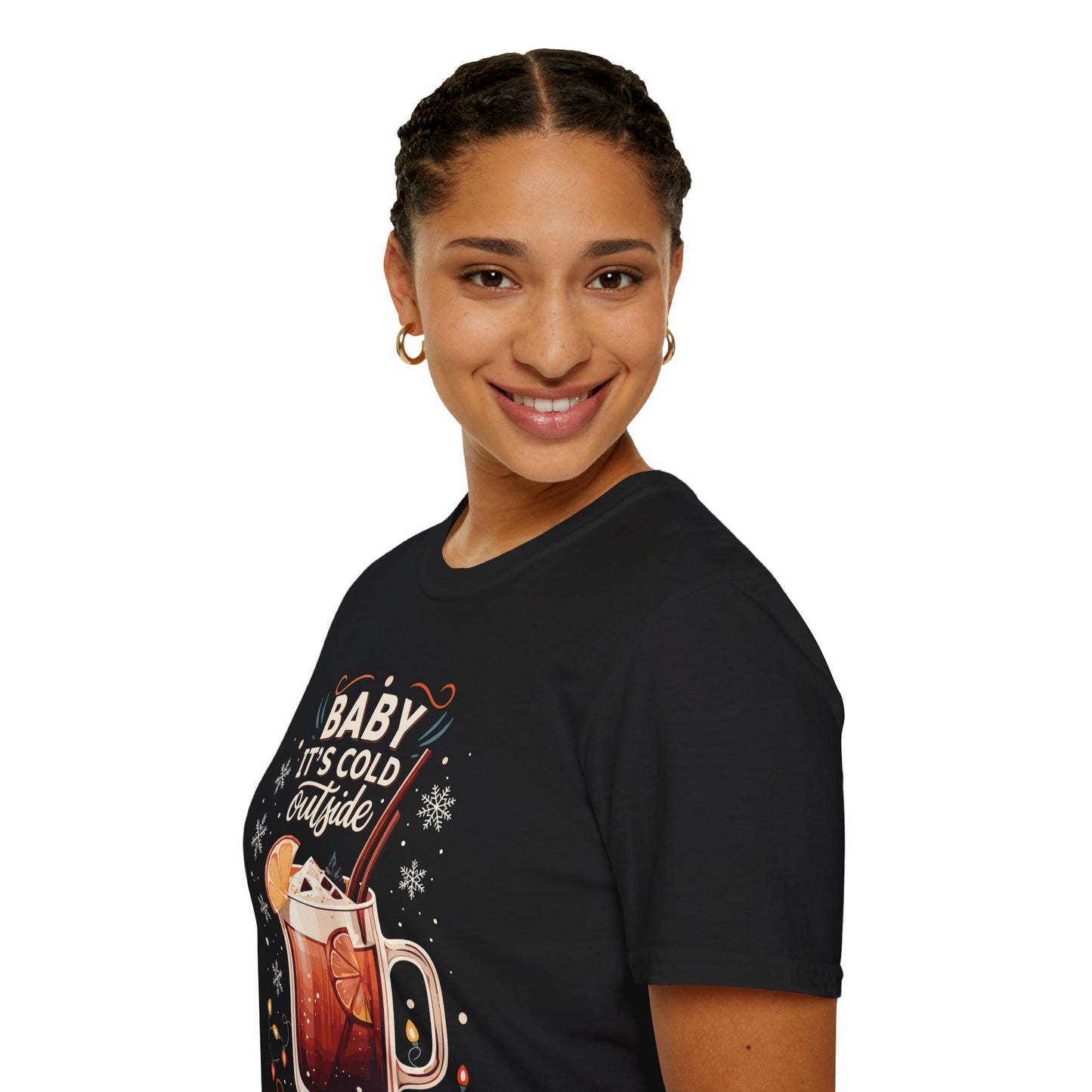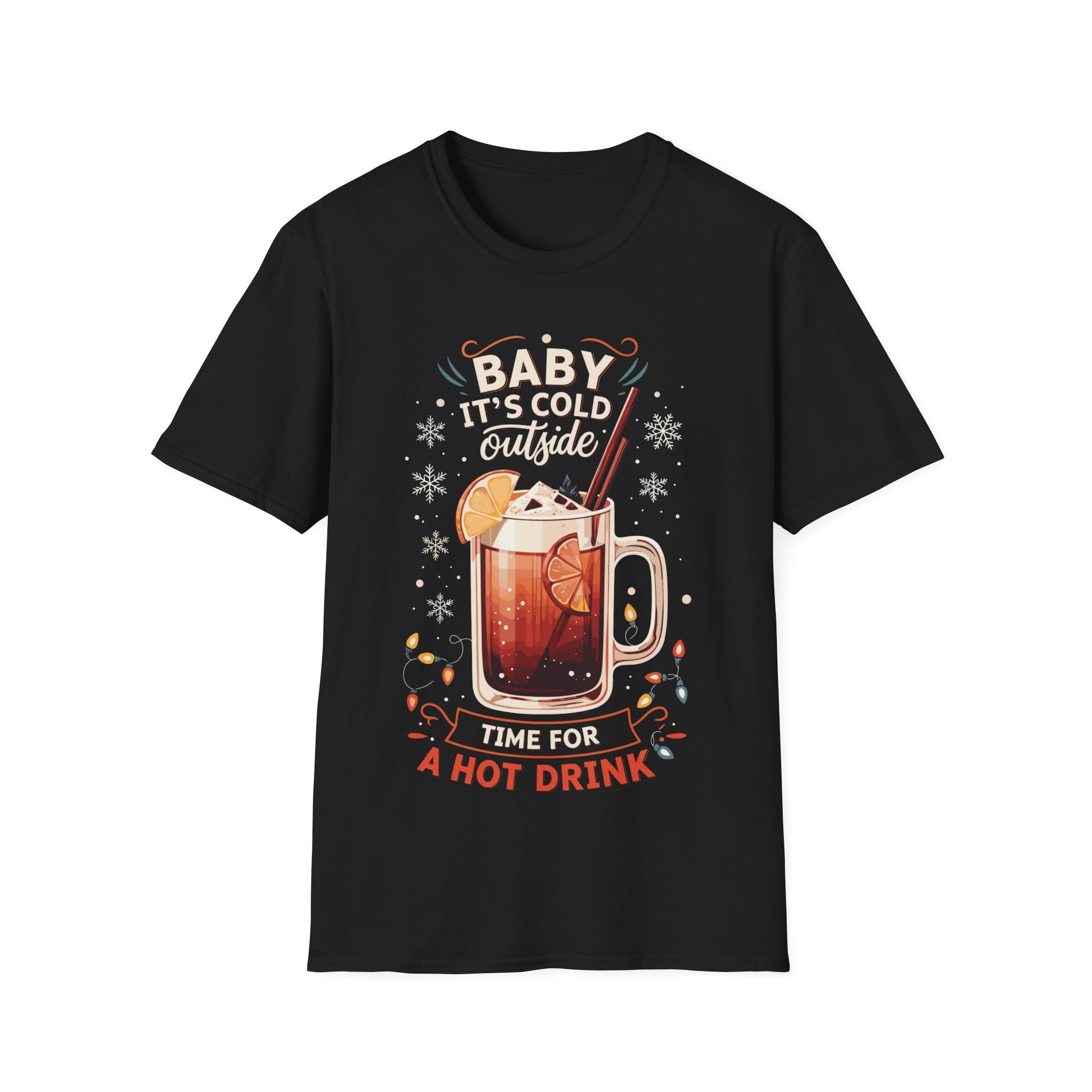 "Baby It's Cold Outside, Time for a Hot Drink" Unisex Softstyle T-Shirt