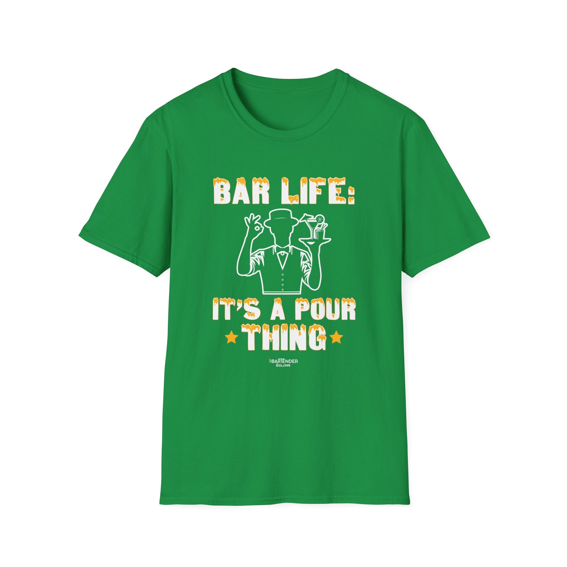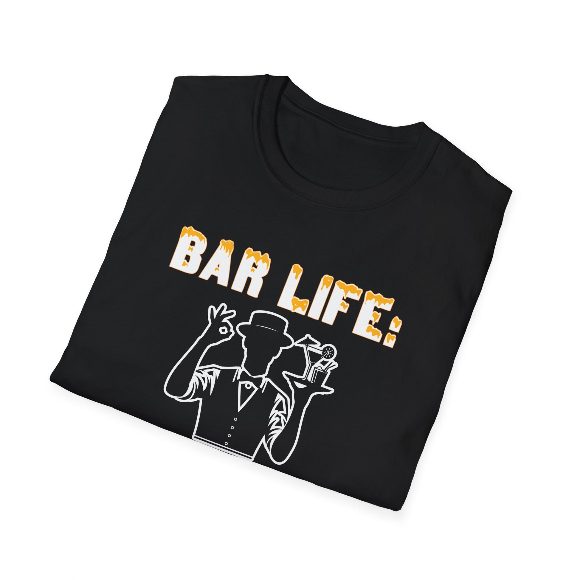 Celebrate the essence of the bar scene with the "Bar Life" tee! This bold design, featuring a bartender silhouette and classic drink imagery, is perfect for bartenders who live and breathe the hustle of bar life. Made with high-quality, soft fabric, this shirt is both stylish and comfortable—perfect for long shifts or a night out. Whether you're serving drinks or enjoying them, this tee represents the passion and skill that bartenders bring to their craft.