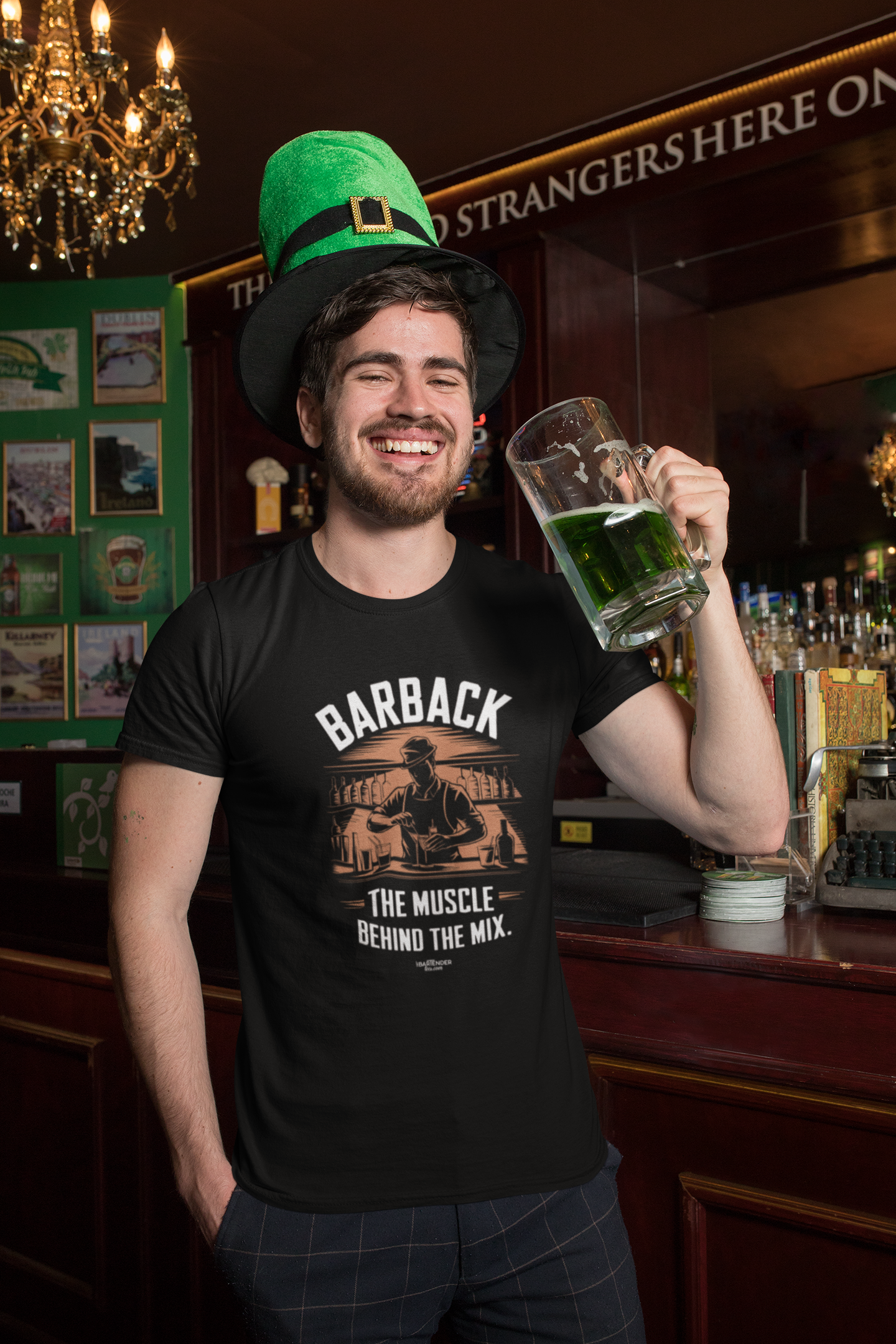 Celebrate the backbone of the bar with the "Barback: The Muscle Behind the Mix" tee! Featuring a sleek and bold design that honors the essential role of the barback, this shirt is a perfect fit for those who keep the bar running smoothly. Made from high-quality fabric for maximum comfort during long shifts, this tee showcases your vital work behind the scenes. Whether you're mixing drinks or prepping the bar for action, let everyone know you're the muscle behind the magic with this striking design.
