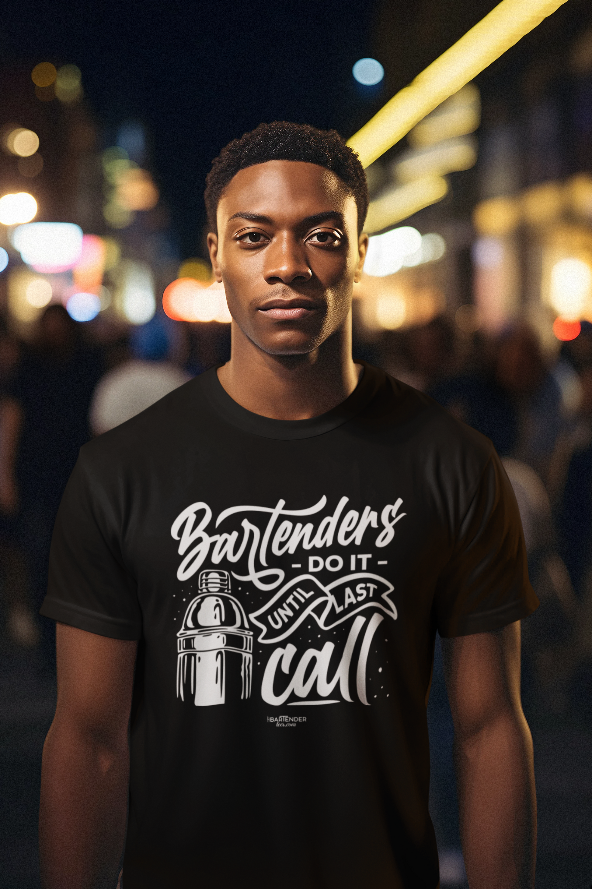 "Bartenders do it Until Last Call" Men's Bartender Tee