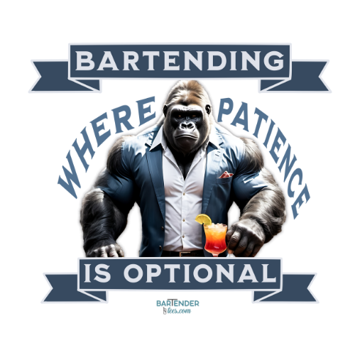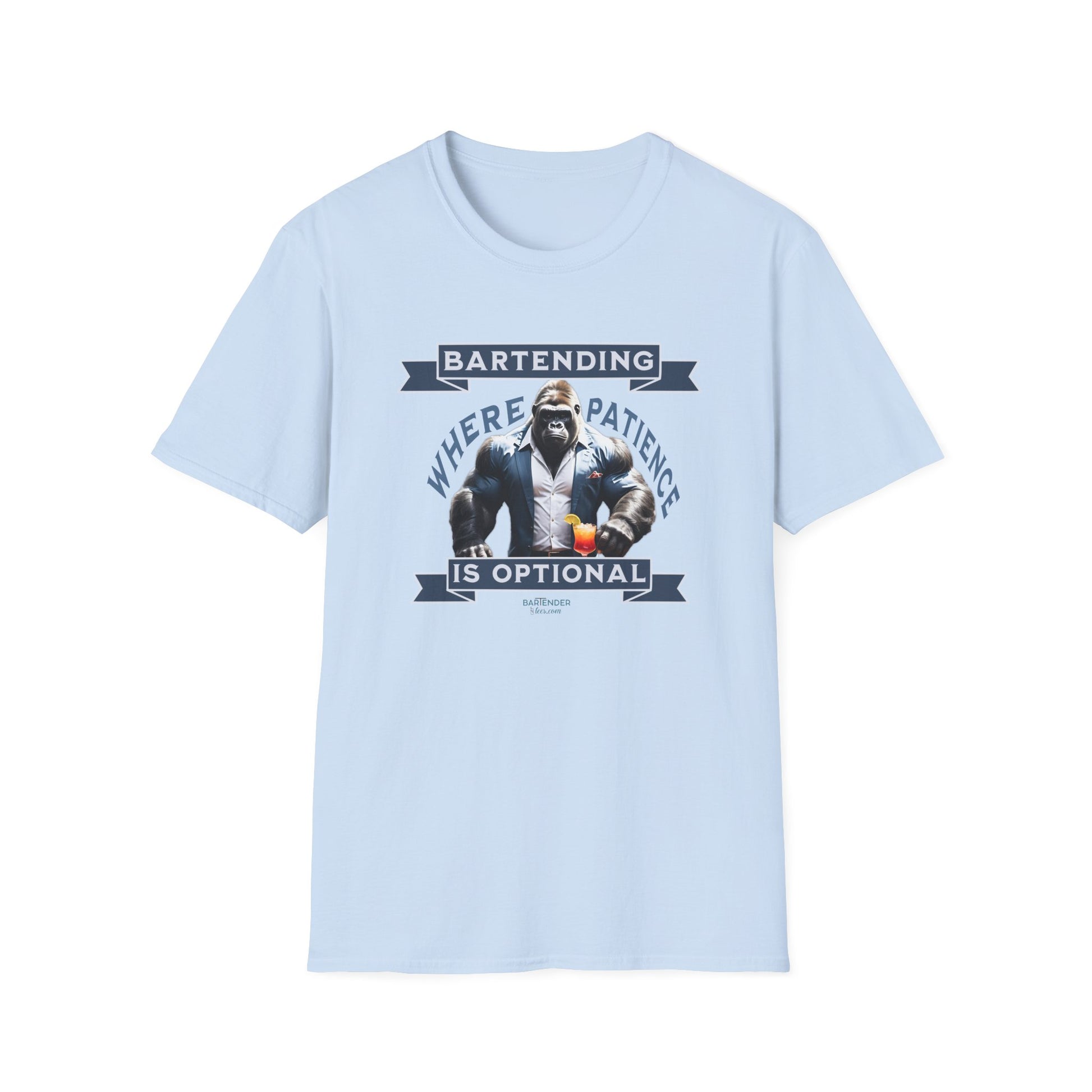 Bring some attitude to your shifts with our "Bartending: Where Patience is Optional" T-shirt. Perfect for bartenders who serve with a side of sarcasm, this tee features a bold design that lets everyone know you’re here to mix drinks, not feelings. Ideal for those who appreciate a strong drink and even stronger personality.