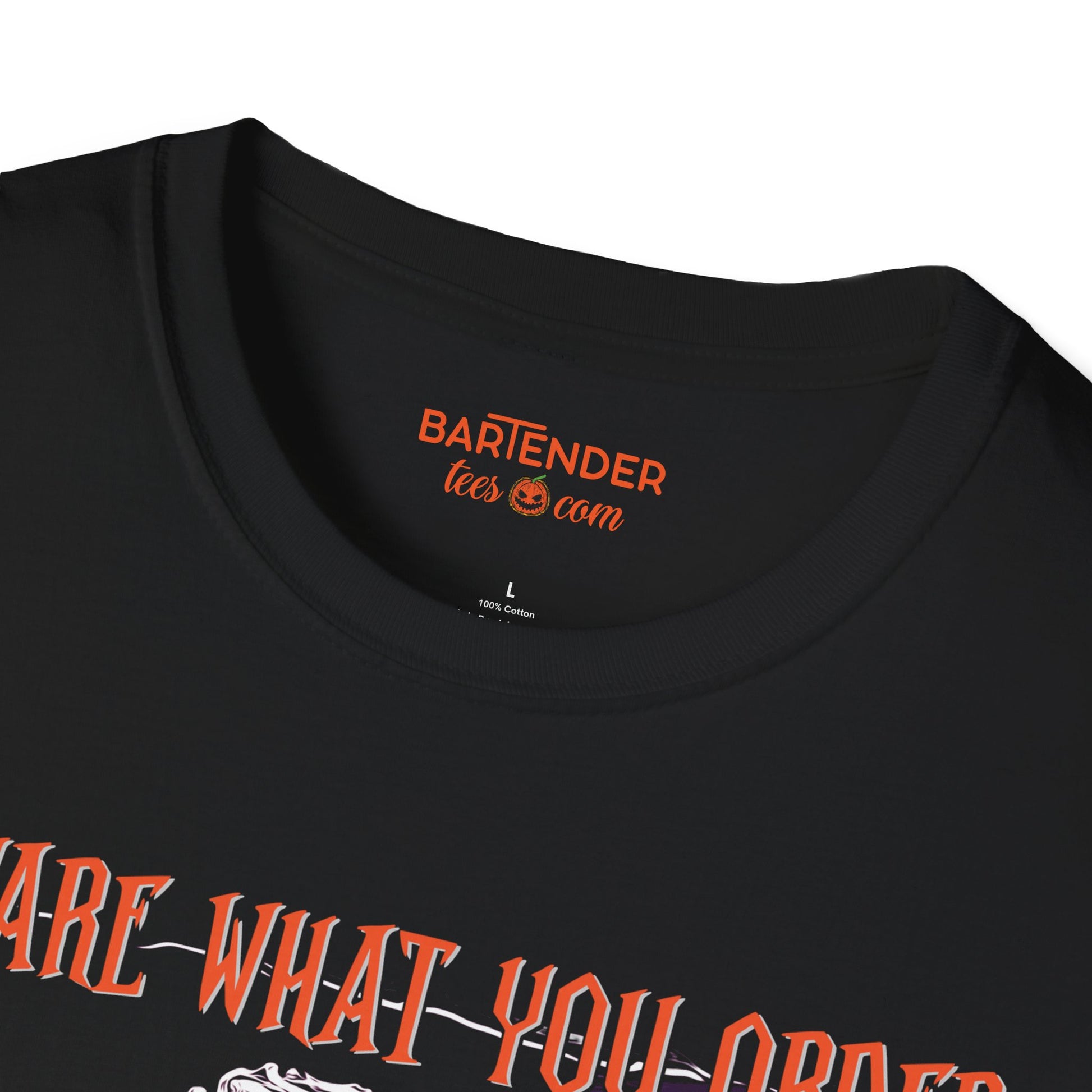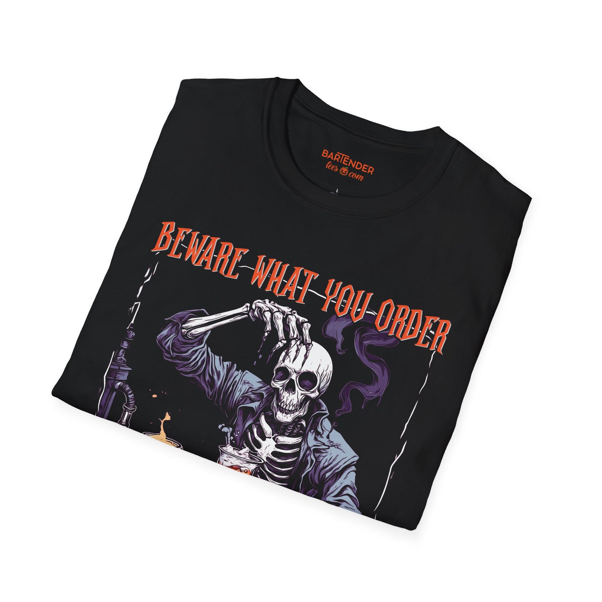 "Beware What You Order, I Might Stir Up More Than-Spirits" Halloween Bartender Softstyle T-Shirt