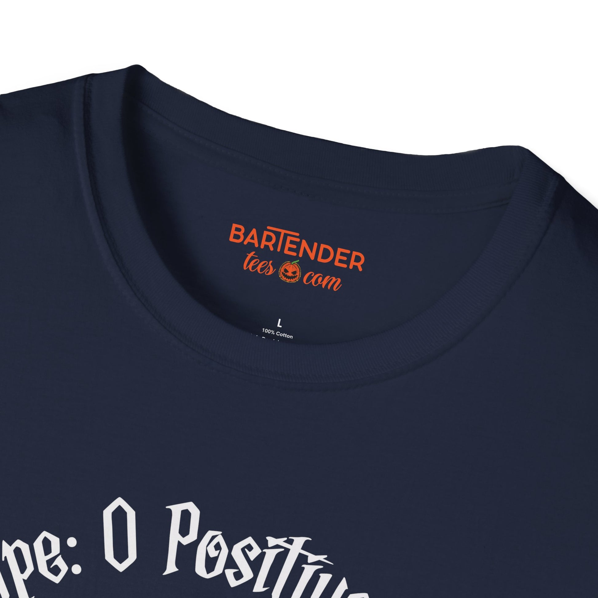 "Blood Type O Positive" Halloween Bartender Softstyle T-Shirt