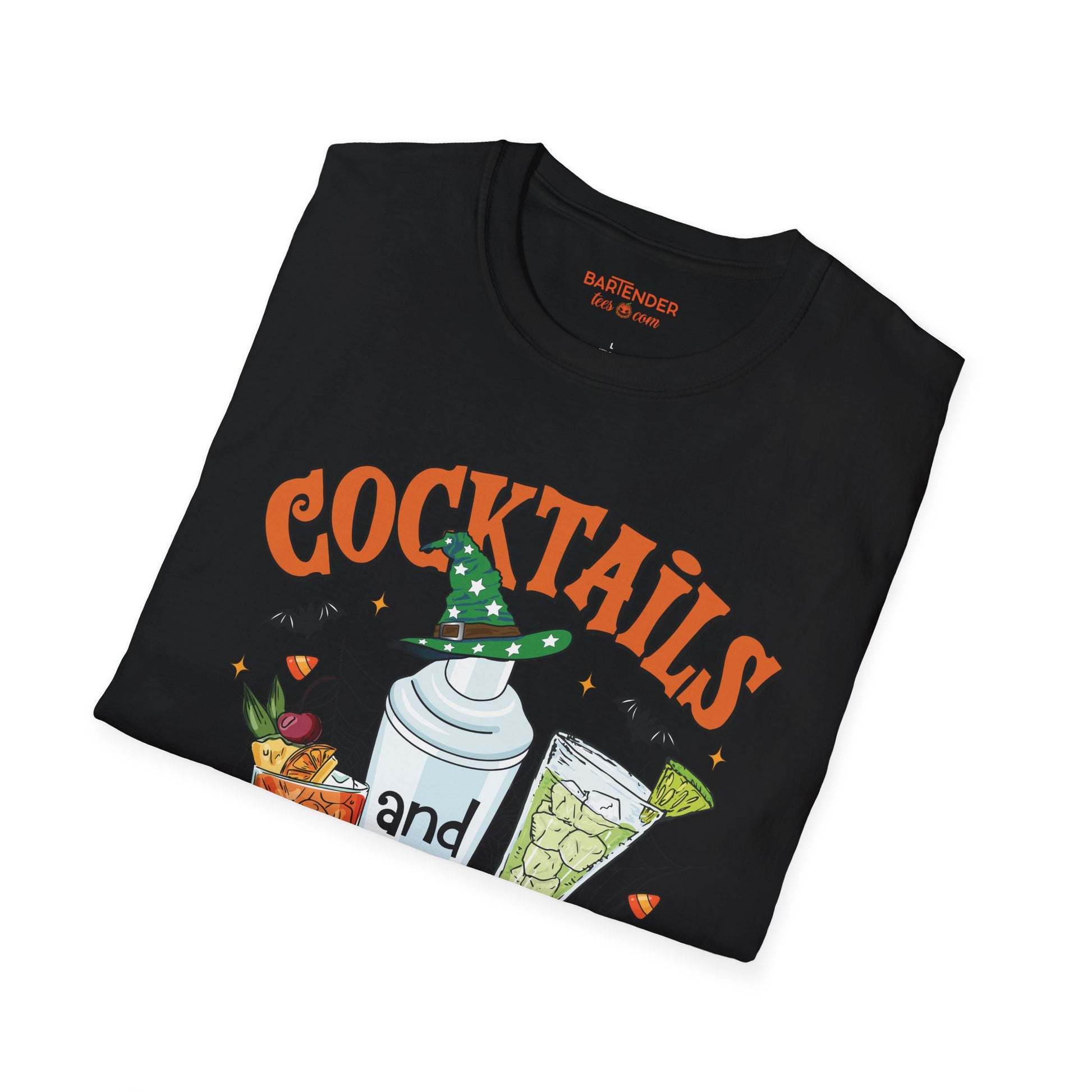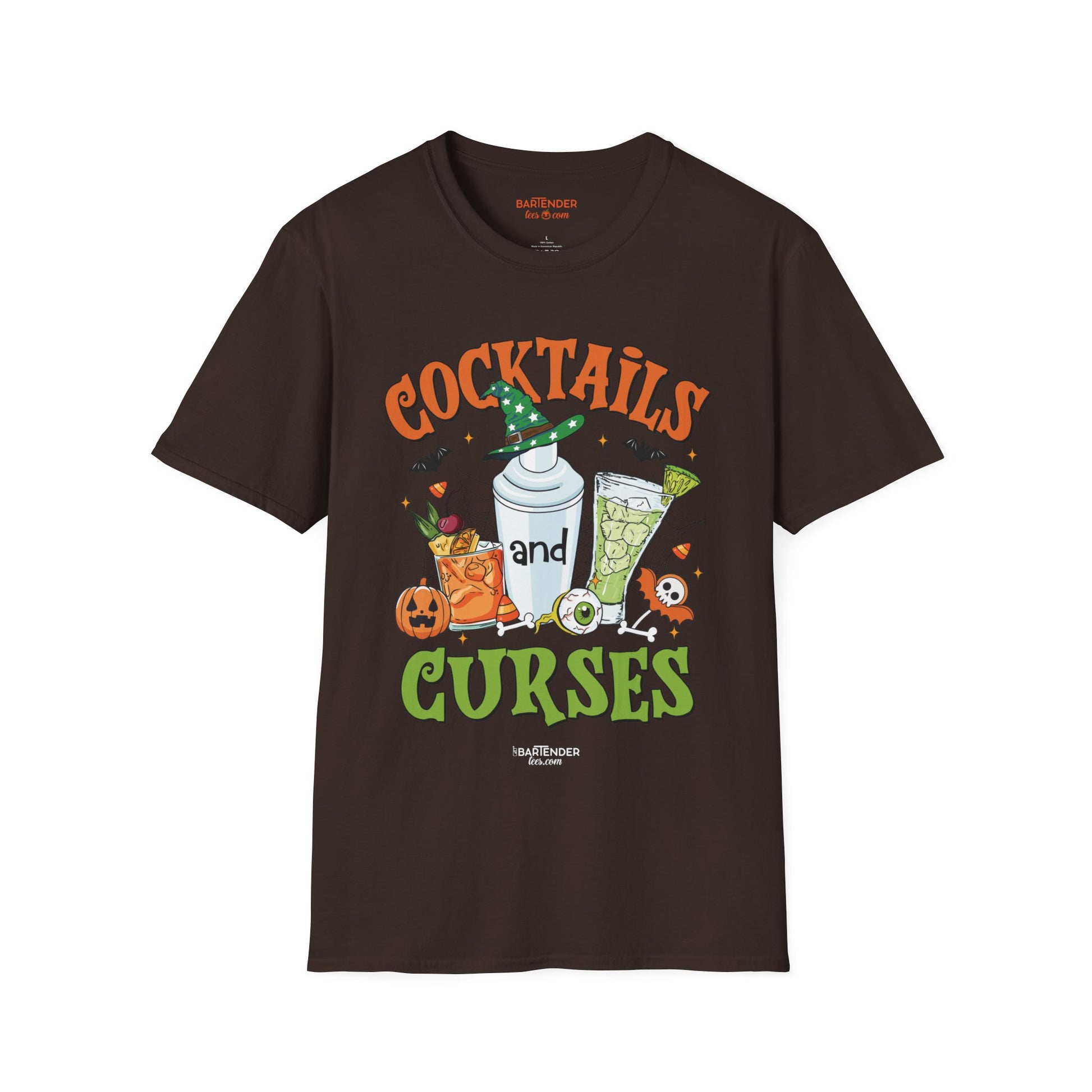 "Cocktails And Curses" Halloween Bartender Softstyle T-Shirt