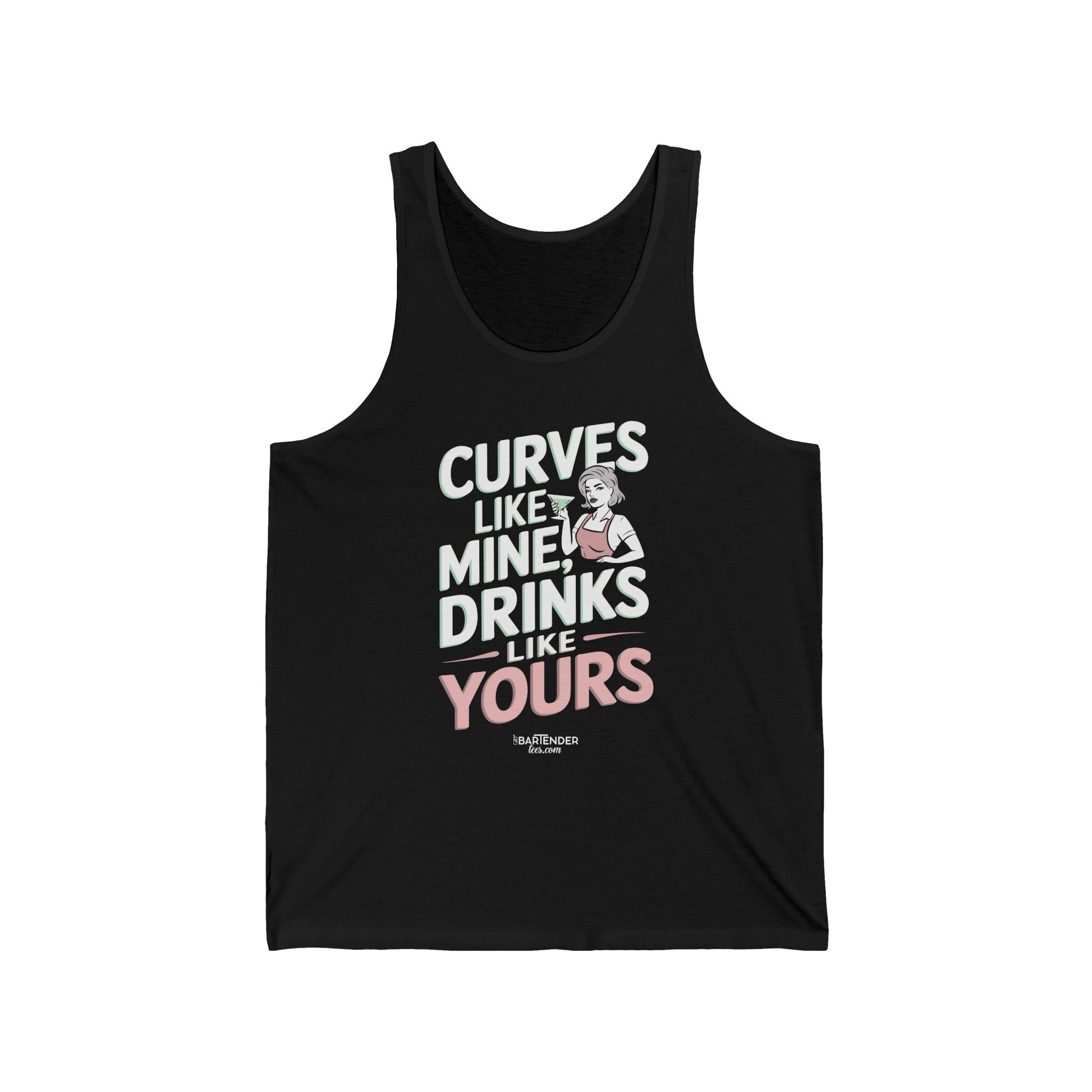 "Curves like mine drinks like yours" Men’s Bartender Tank Top