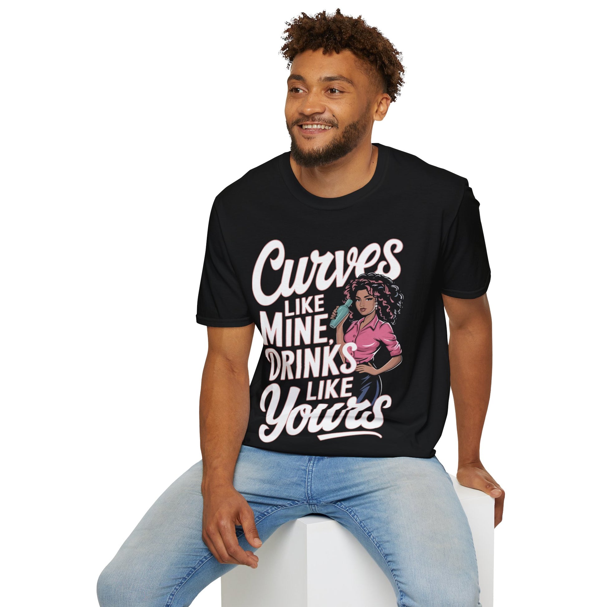 "Curves Like Mine, Drinks Like Yours" Softstyle T-Shirt