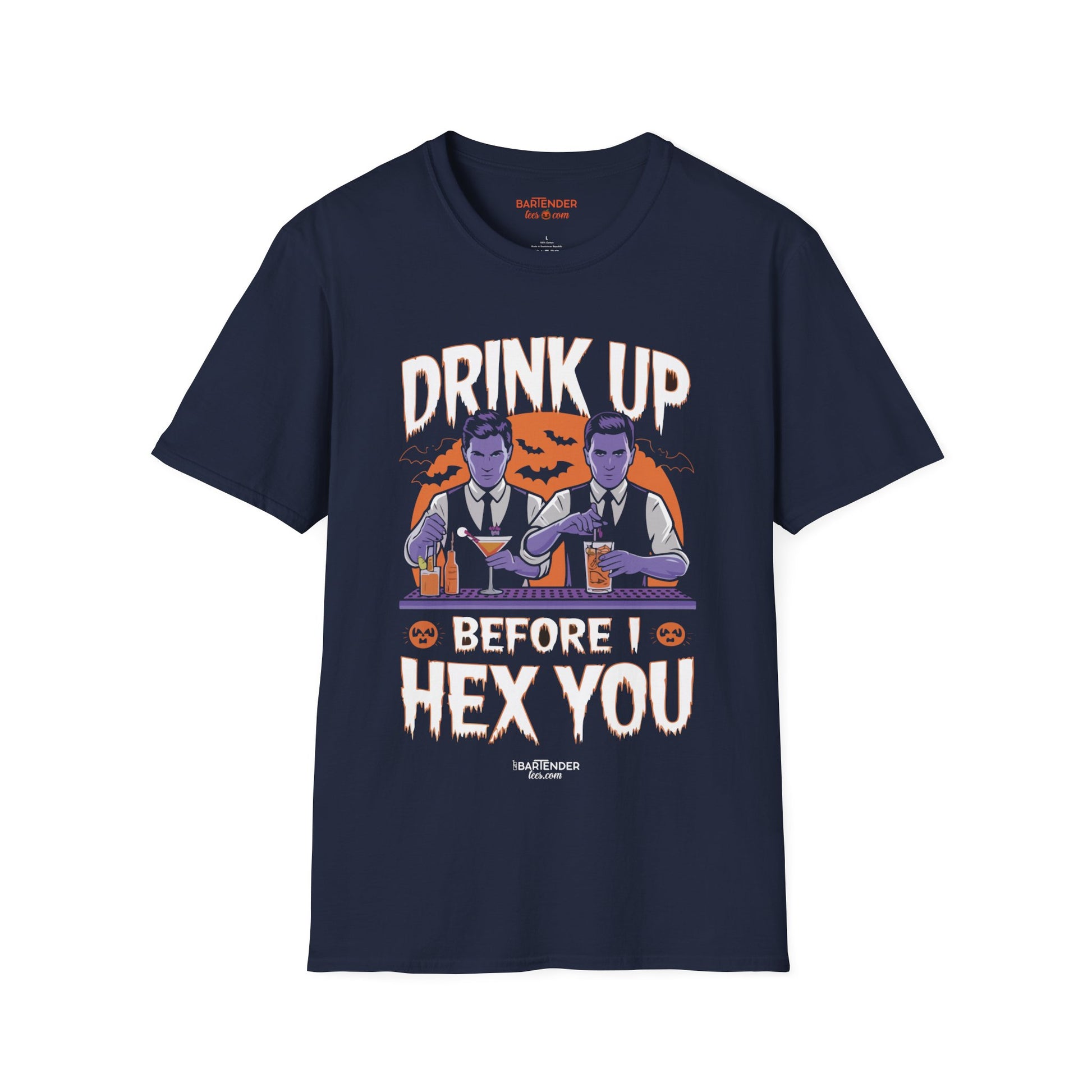 "Drink Up Before I Hex You" Halloween Bartender Softstyle T-Shirt