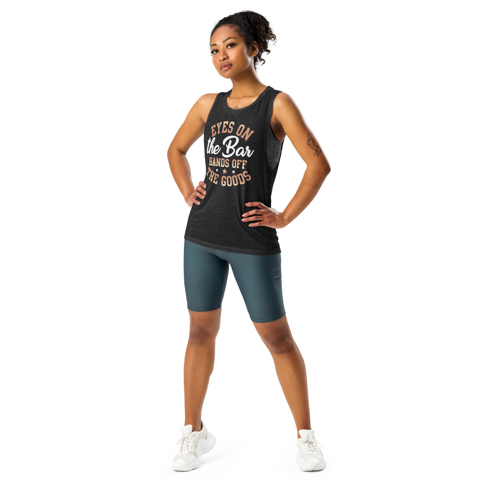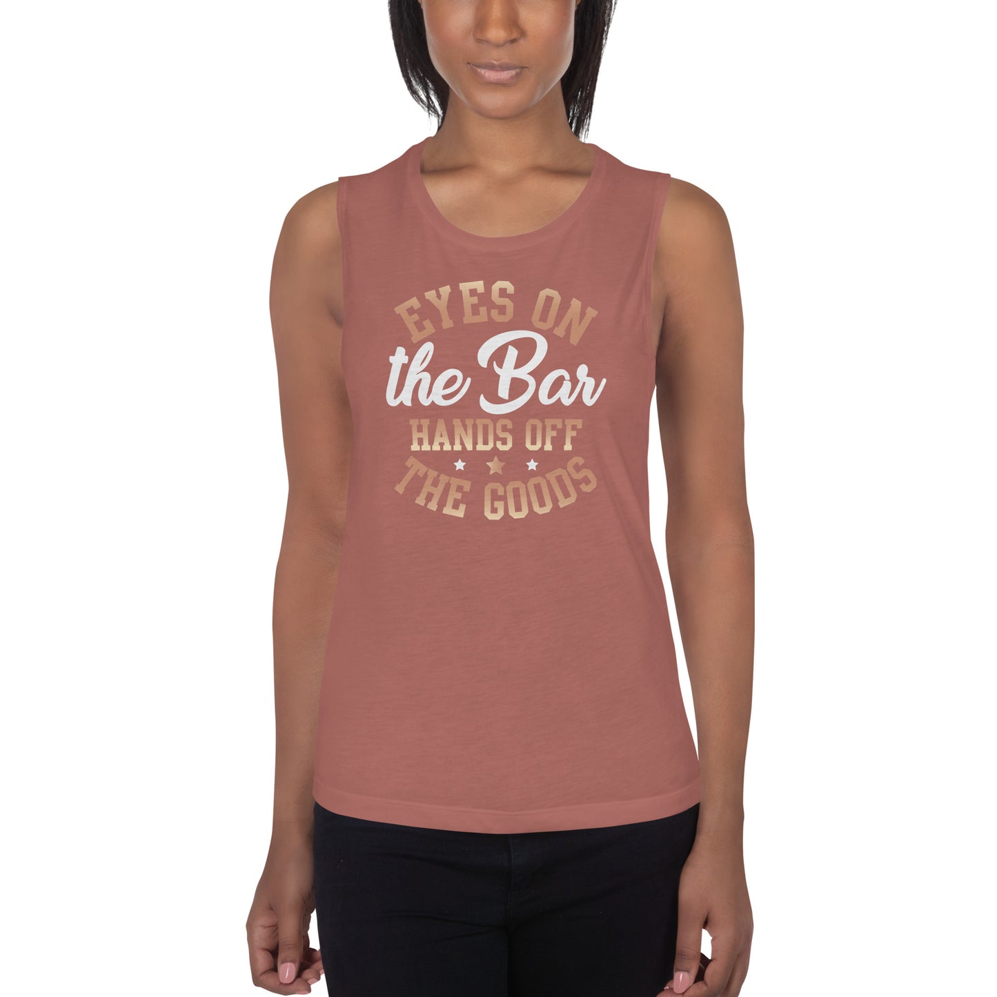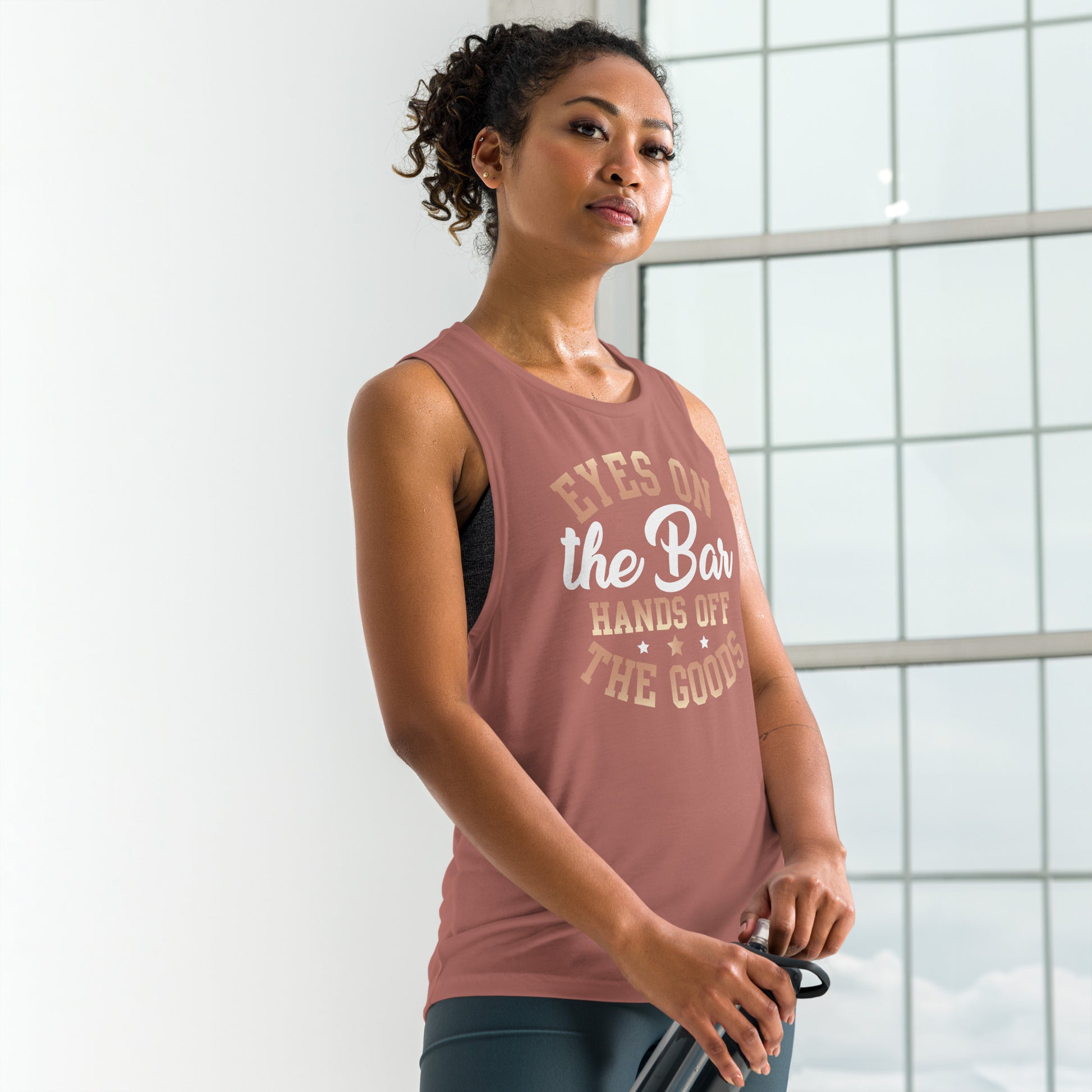 "Eyes On The Bar Hands Off The Goods" Women's Muscle Tank
