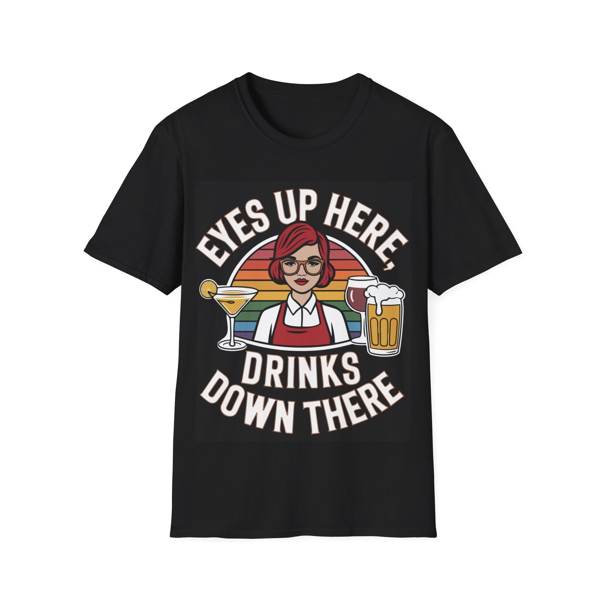 "Eyes Up Here, Drinks Down There" Softstyle T-Shirt