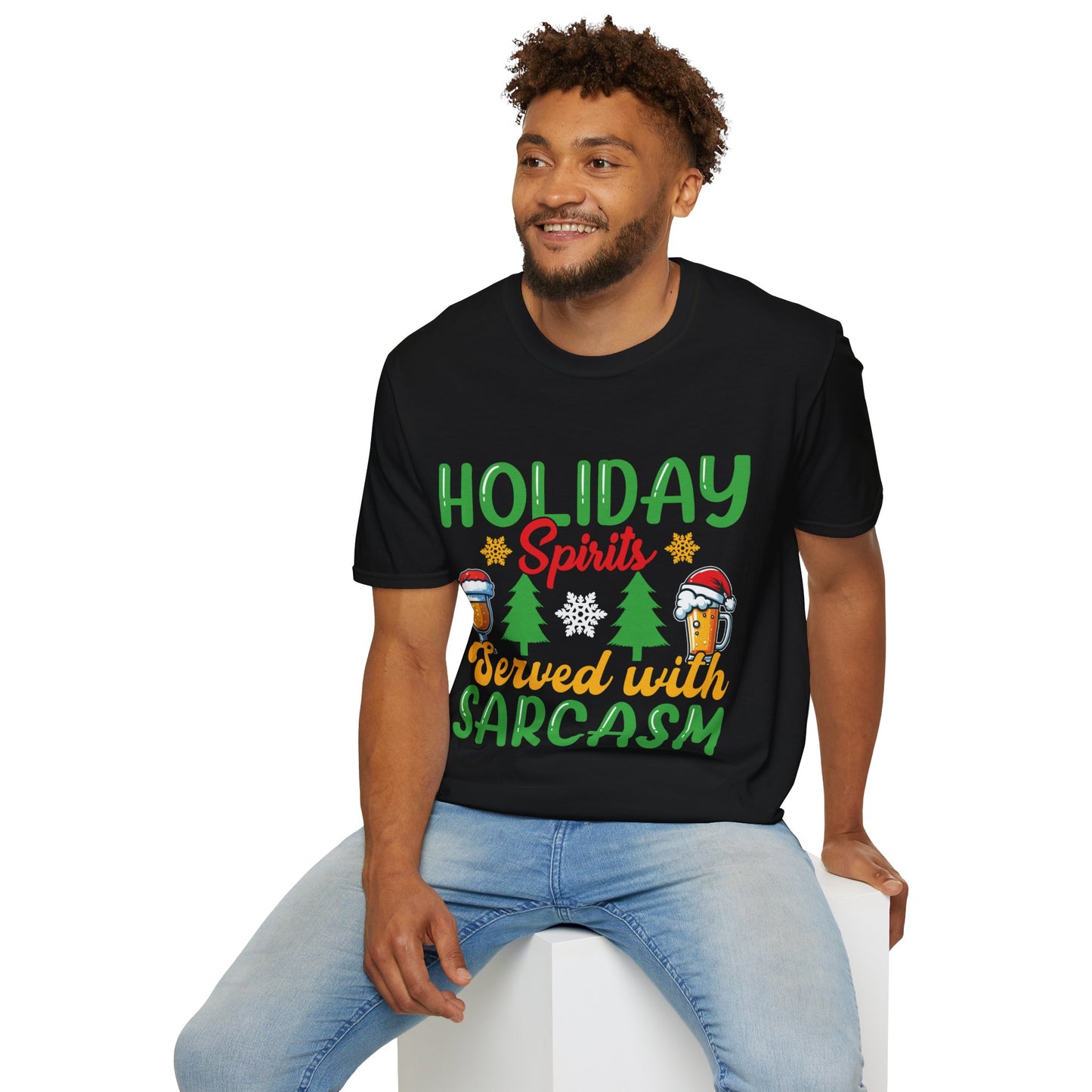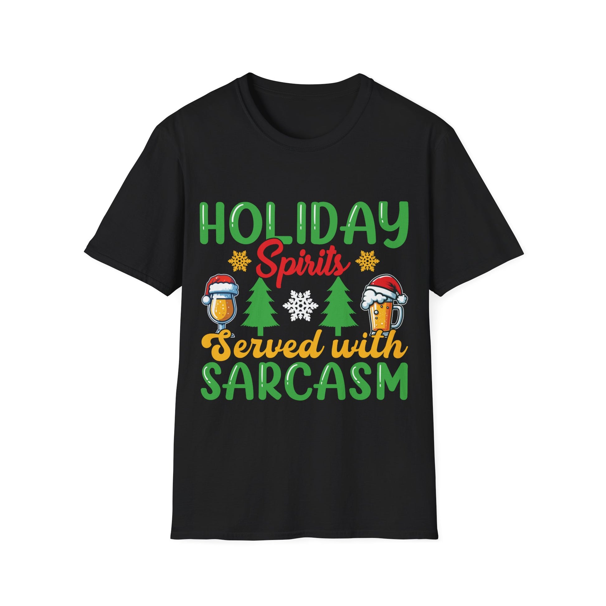"Holiday Spirits Served with Sarcasm" Unisex Softstyle T-Shirt