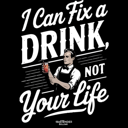 For bartenders who know their limits, this witty tee says it all! "I Can Fix a Drink, Not Your Life" is a humorous reminder to keep the drinks flowing, but the advice limited. Perfect for any bartender who knows how to mix the best cocktails while keeping things real. This shirt is great for work shifts, casual outings, or for gifting to your favorite bartender with a sense of humor.
