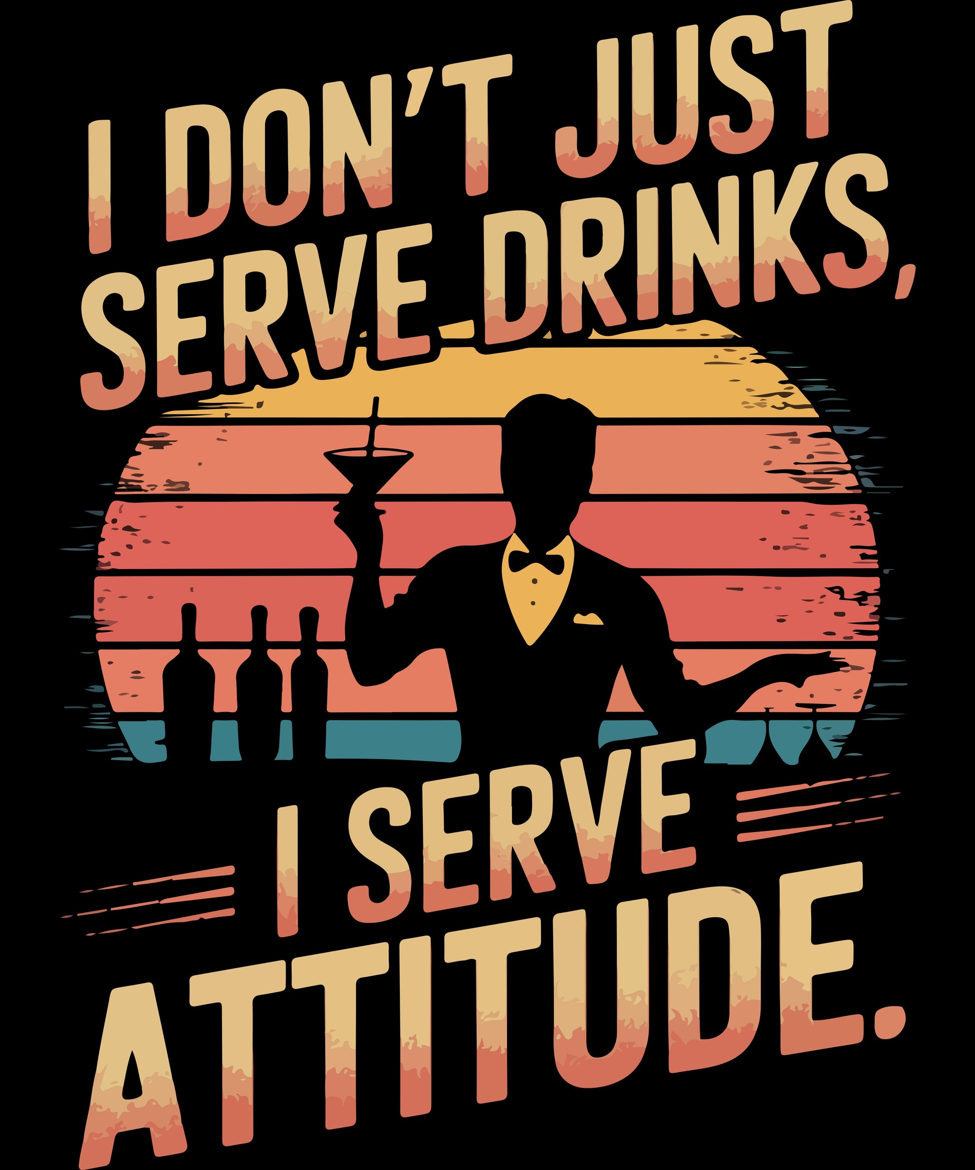 Elevate your bar game with our bold "I Don’t Just Serve Drinks, I Serve Attitude" bartender hoodie. Perfect for those who like to bring personality and flair to their bartending, this hoodie is a fun and stylish way to showcase your passion. Designed for both comfort and durability—ideal for long nights behind the bar or casual nights out. With its eye-catching retro sunset design and confident statement, this hoodie makes an unforgettable impression wherever you go.