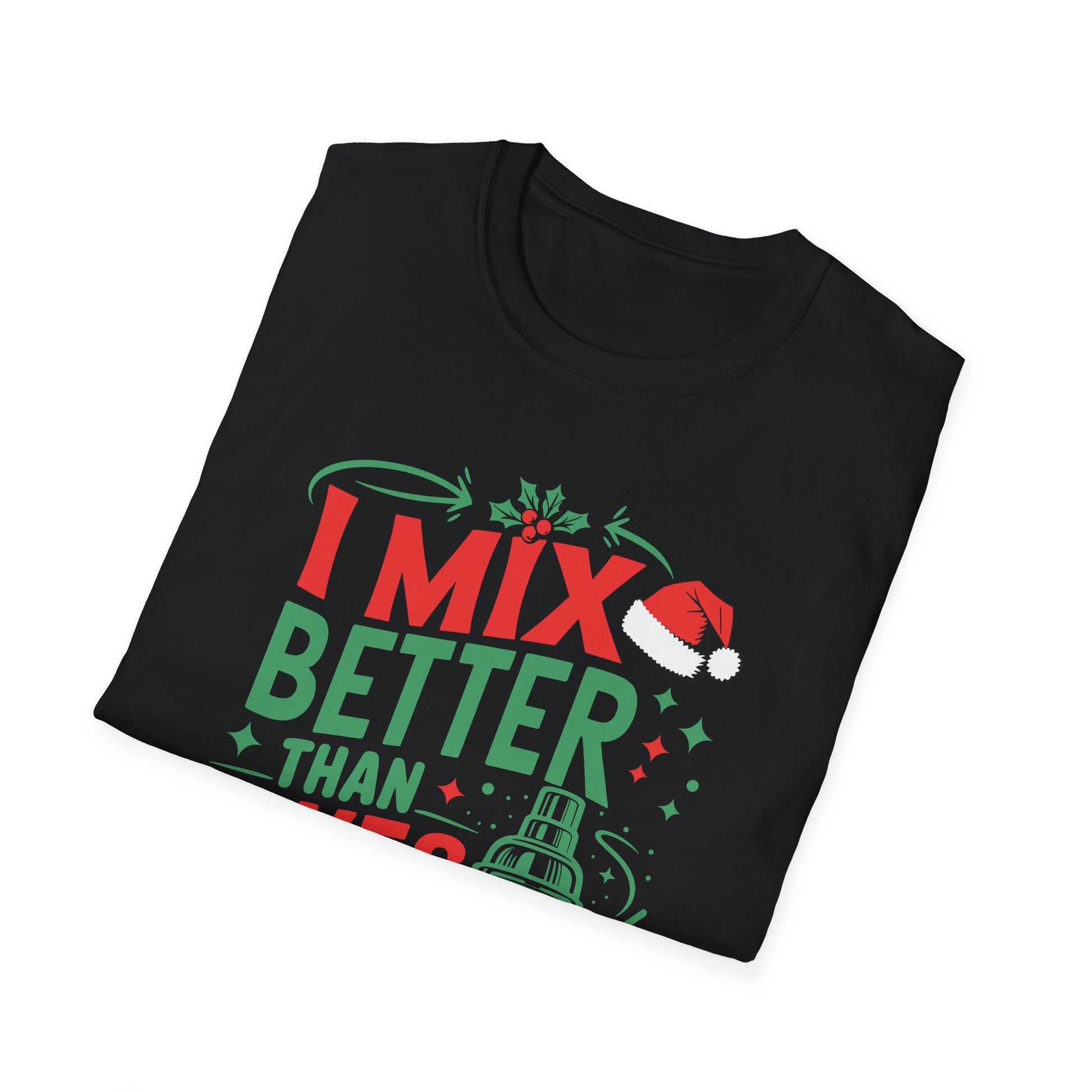 “I mix better than elves make toys” Unisex Softstyle T-Shirt