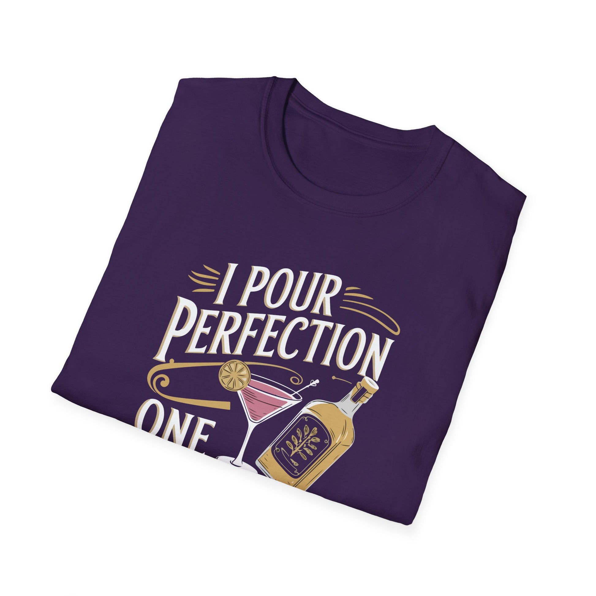 Step up your bartending game with our "I Pour Perfection One Drink at a Time" T-shirt. Perfect for bartenders and mixologists who take pride in every pour, this tee is a celebration of craftsmanship and attention to detail. Featuring a sleek bottle and cocktail illustration with elegant typography, this design is made to impress. Crafted from soft, durable cotton, it's comfortable enough for long shifts yet stylish enough for any casual outing. Whether you're behind the bar or enjoying a night out, this shirt is the perfect blend of confidence and class.