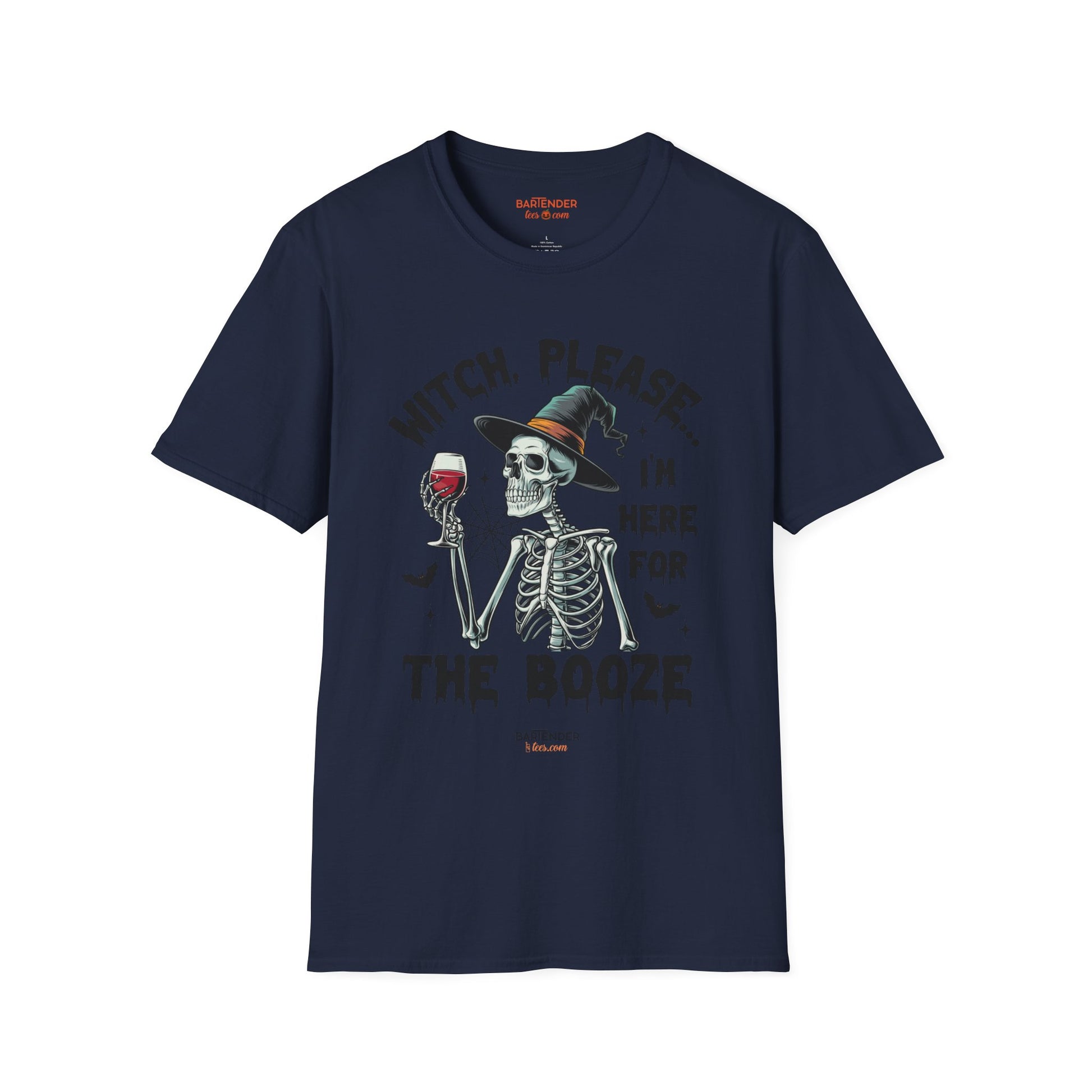 "I'm Here For The Booze" Halloween Bartender Softstyle T-Shirt