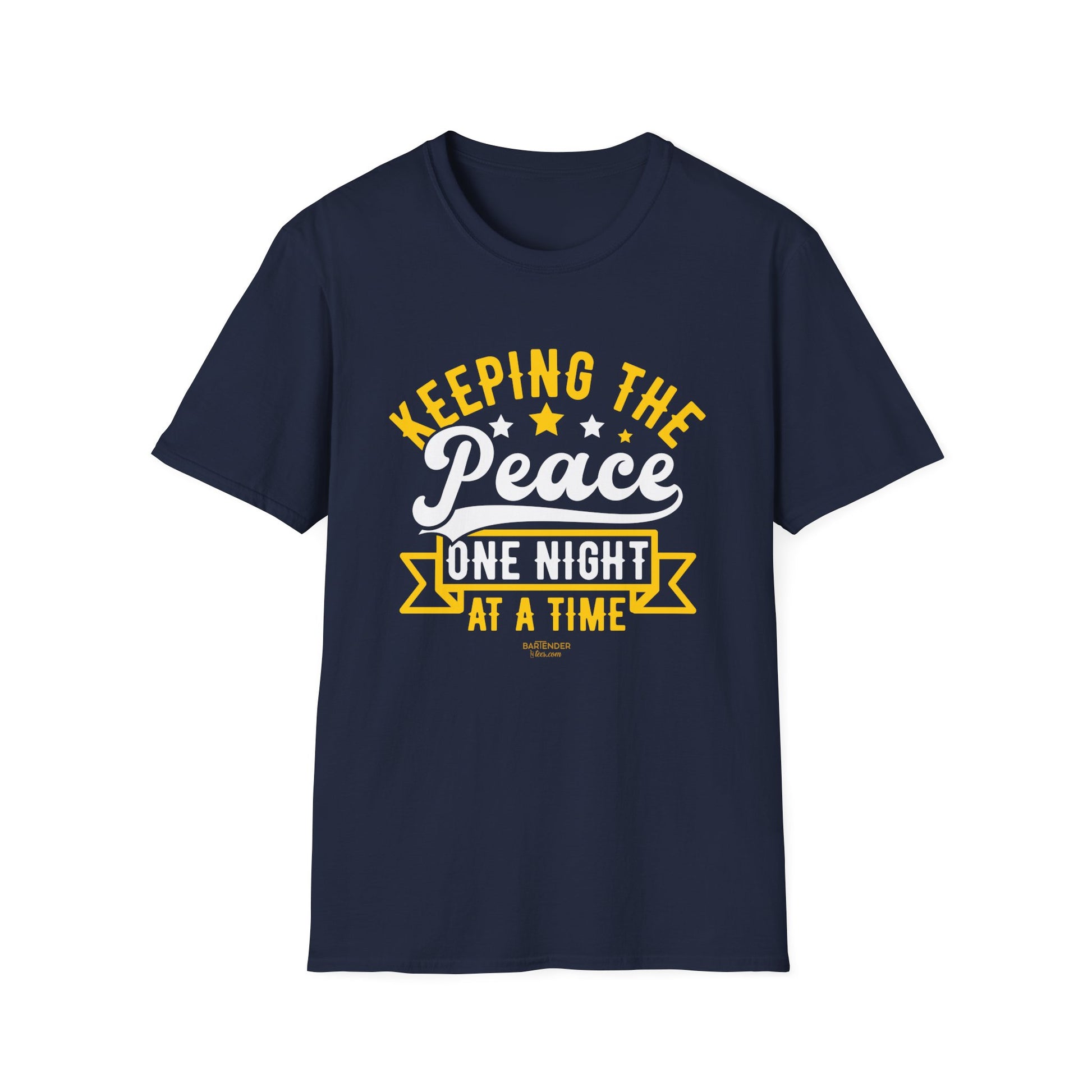 Maintain order with style in this "Keeping the Peace One Night at a Time" design. Whether you're a bartender, bouncer, or just someone who knows how to keep things under control, this shirt lets everyone know you're the one holding it down. With bold fonts and a standout color scheme, it's perfect for those who work hard to keep the vibes cool and collected.