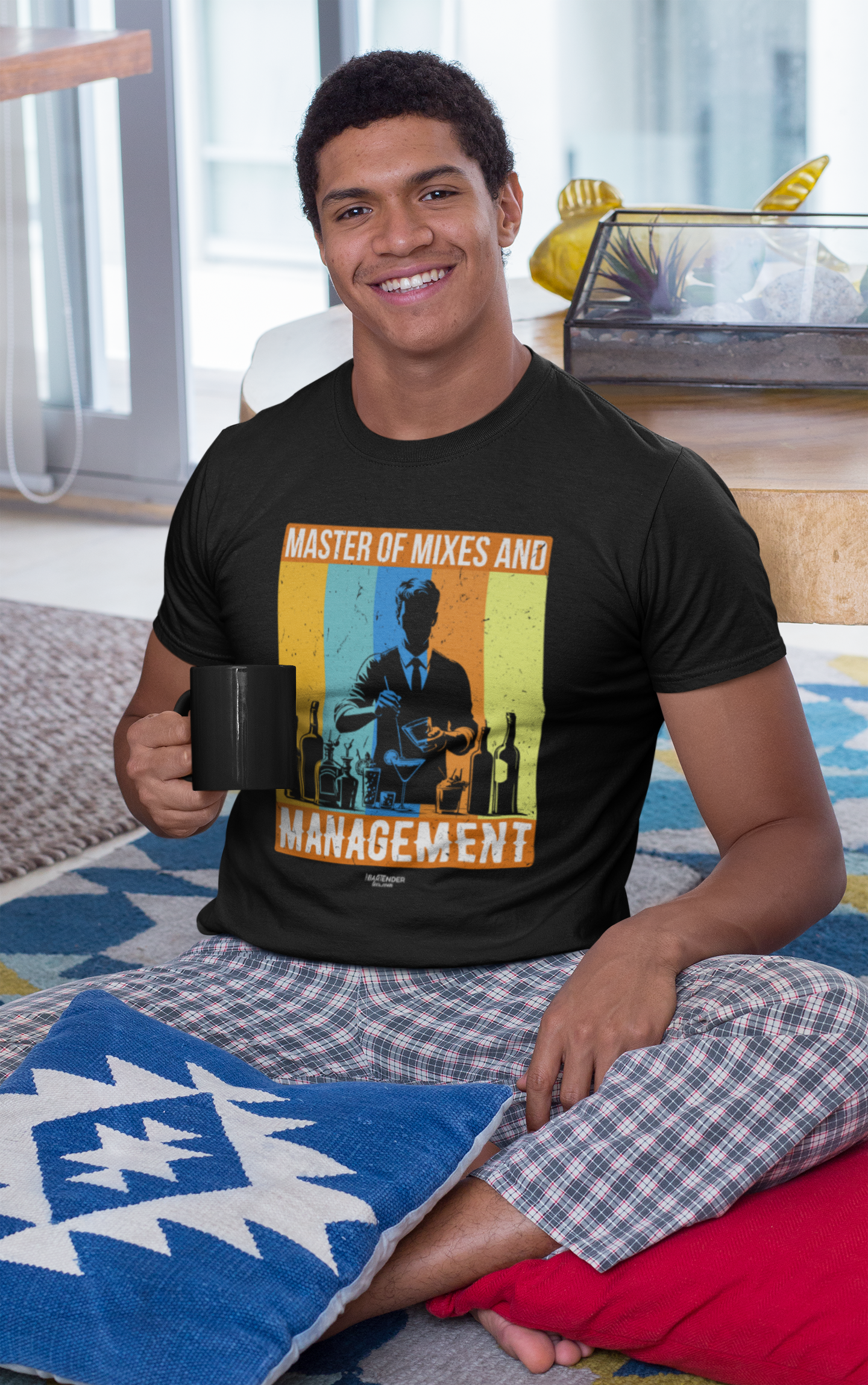 Show off your bartending prowess with this bold and retro-inspired design, perfect for the master mixologist who also knows how to manage the bar. Featuring a silhouette of a skilled bartender mixing up some magic, this shirt celebrates those who are not just experts behind the bar but can also keep things running smoothly. With vibrant, vintage colors and a striking graphic, this tee is a must-have for anyone in charge of both drinks and the bar itself.