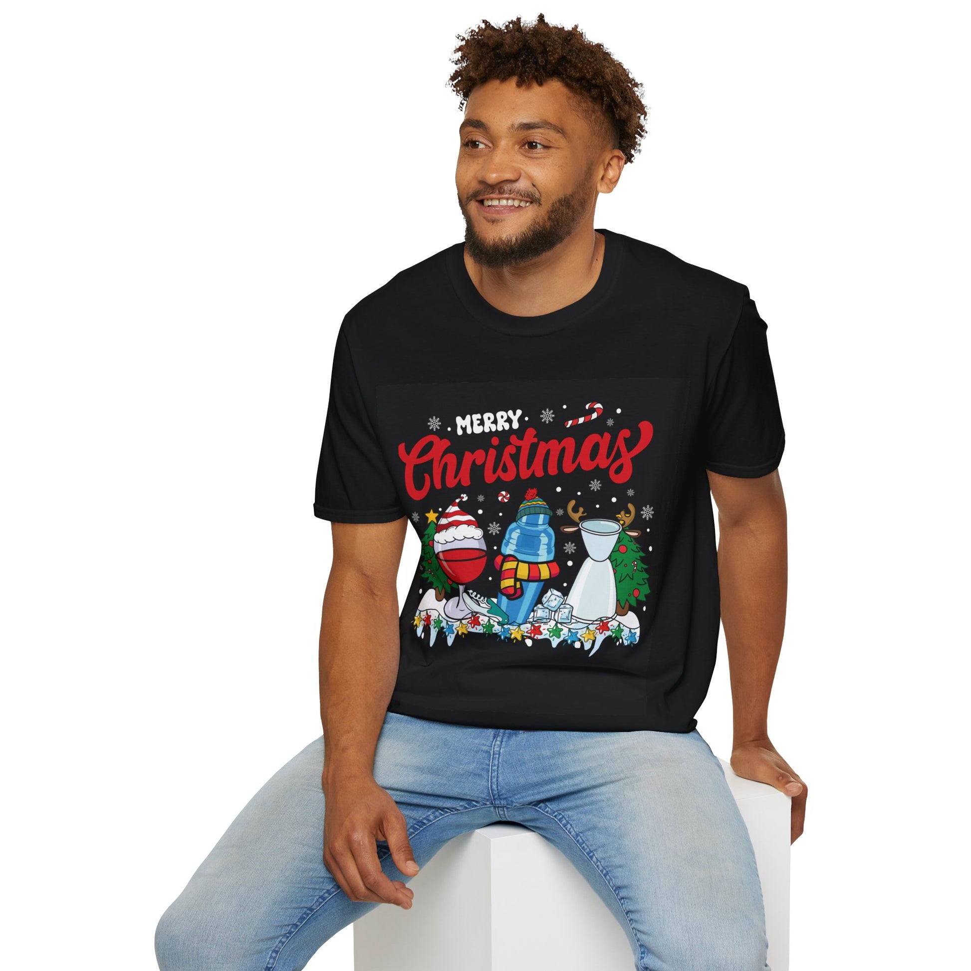 Get into the holiday spirit with this fun and festive "Merry Christmas" bartender tee! Featuring a playful design with holiday-themed bar essentials—complete with Santa hats, scarves, and reindeer antlers—this shirt is perfect for bartenders who want to mix a little holiday cheer with their shift. Made from soft, high-quality fabric, this tee is comfortable enough for long hours behind the bar or casual holiday celebrations. Show off your bartending pride while spreading Christmas cheer with this unique and colorful design!