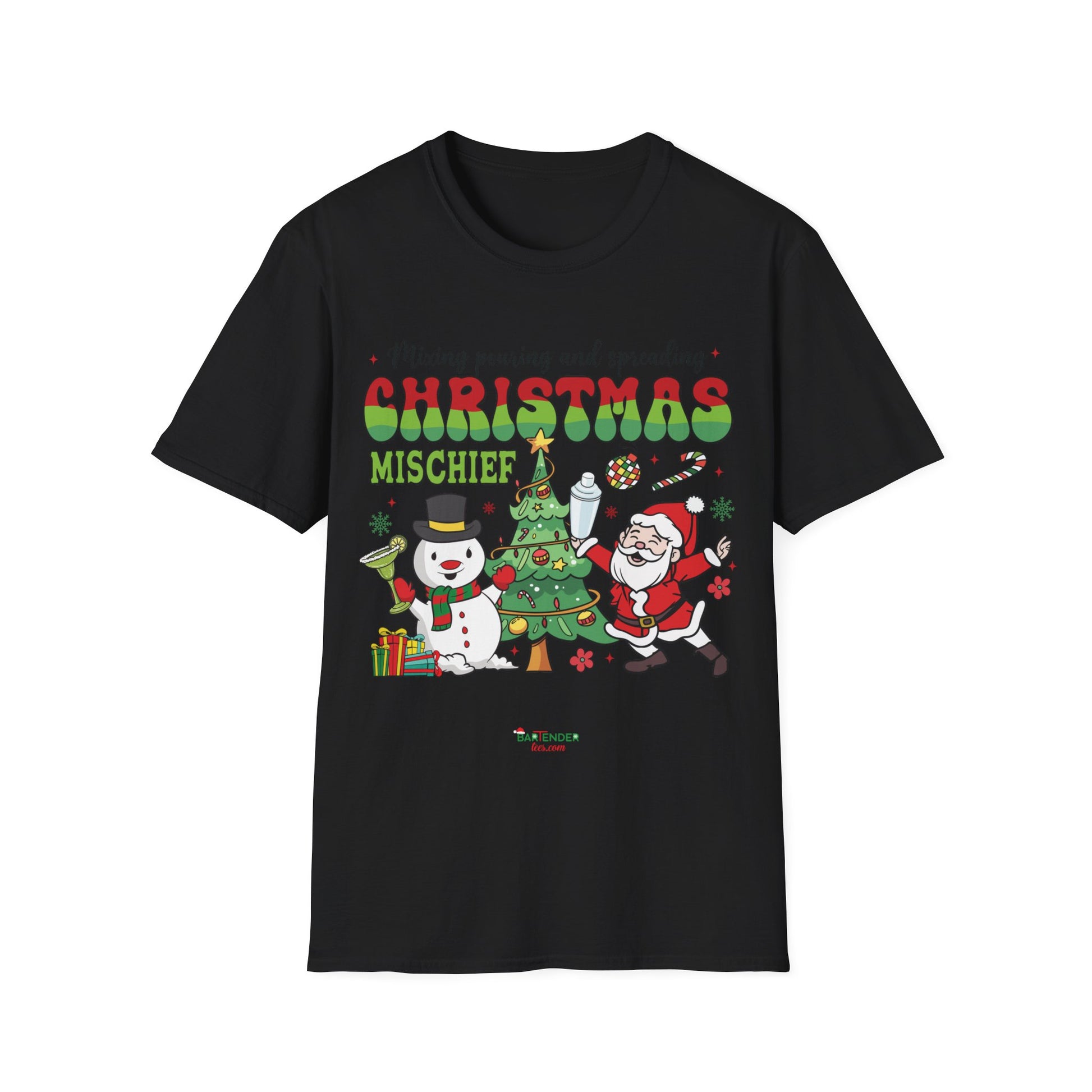 Add a playful twist to your holiday bartending attire with this festive Christmas tee! The bold design features the slogan “Merry Mischief” capturing the essence of a bartender who knows how to keep the party going. Perfect for the holiday season, this shirt is a great conversation starter for those who mix drinks and spread cheer. Made from high-quality fabric, it’s comfortable for long shifts or casual holiday parties. Pair it with your favorite jeans or apron and bring the festive spirit behind the bar!