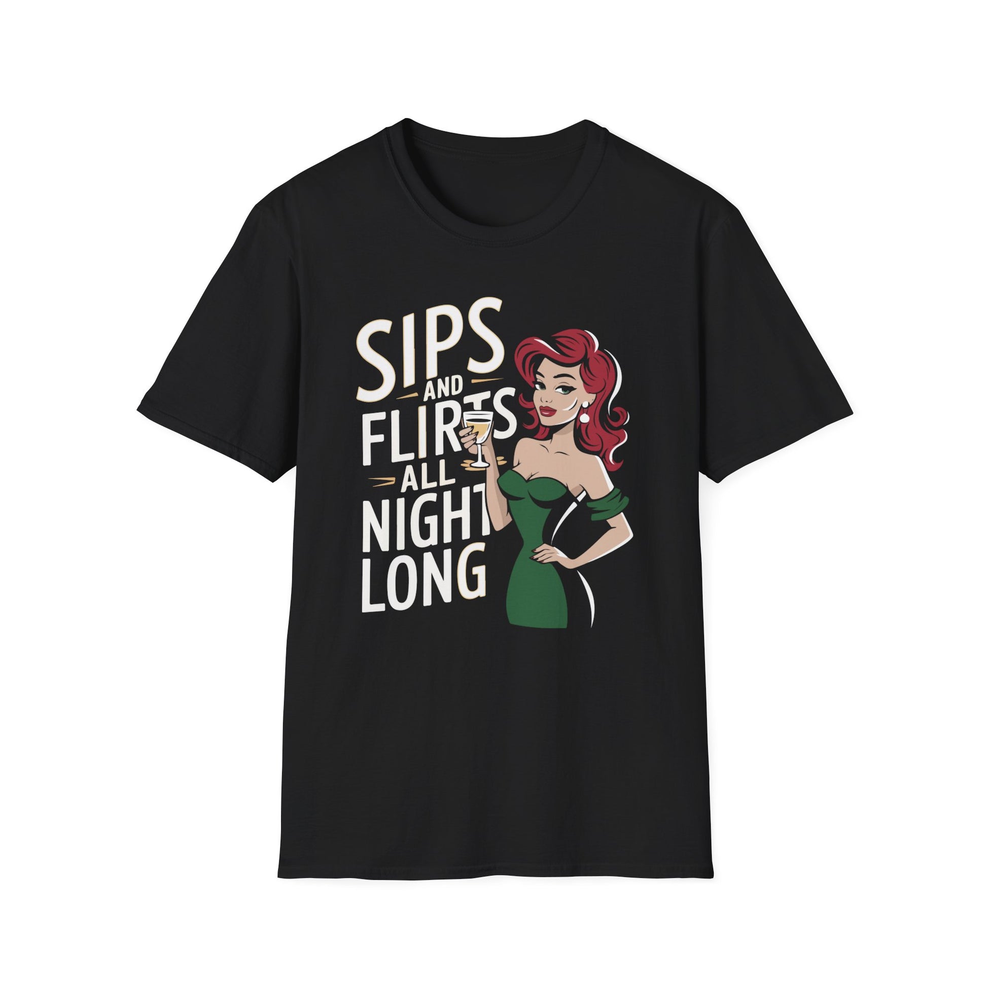 "Sips and Flirts All Night Long" Softstyle T-Shirt