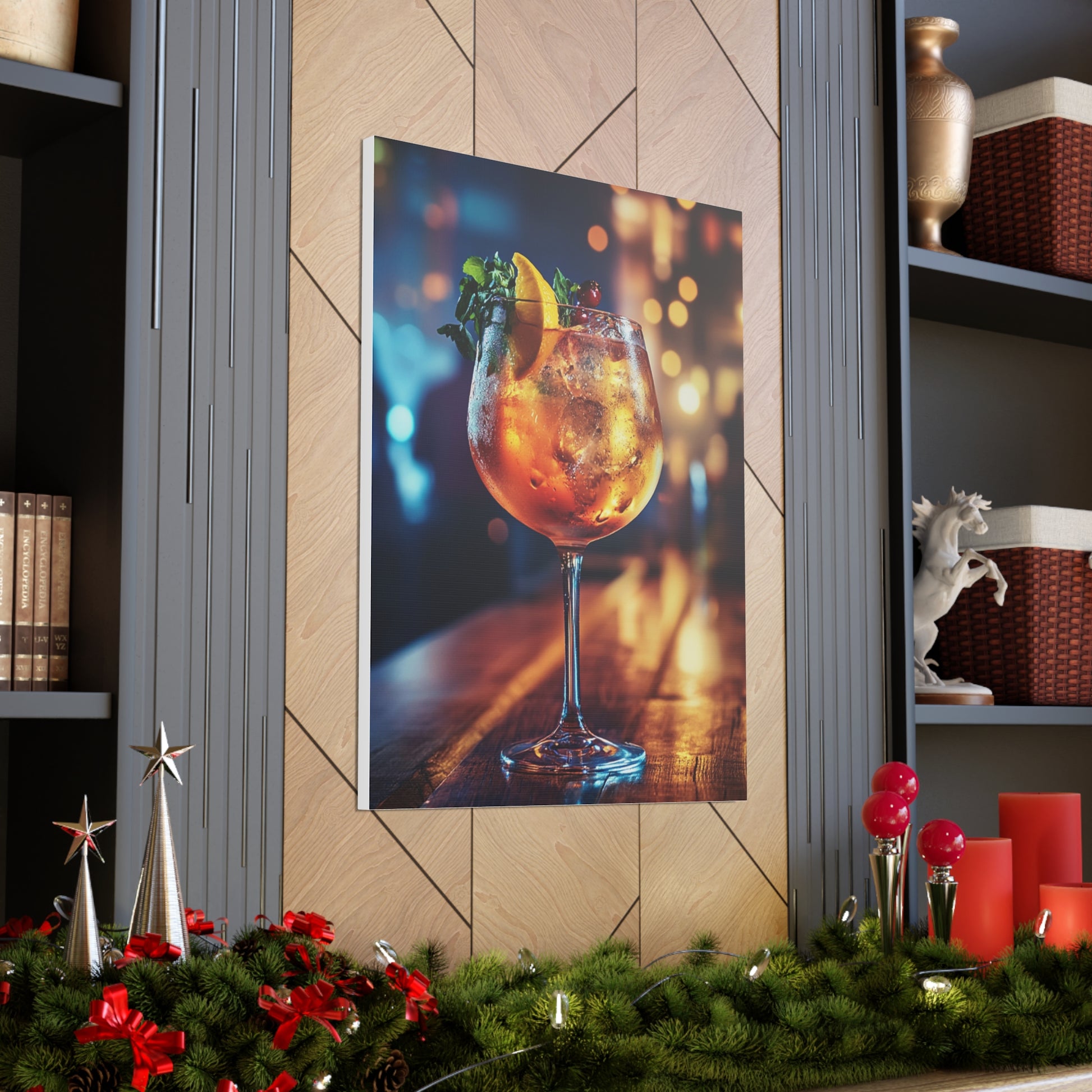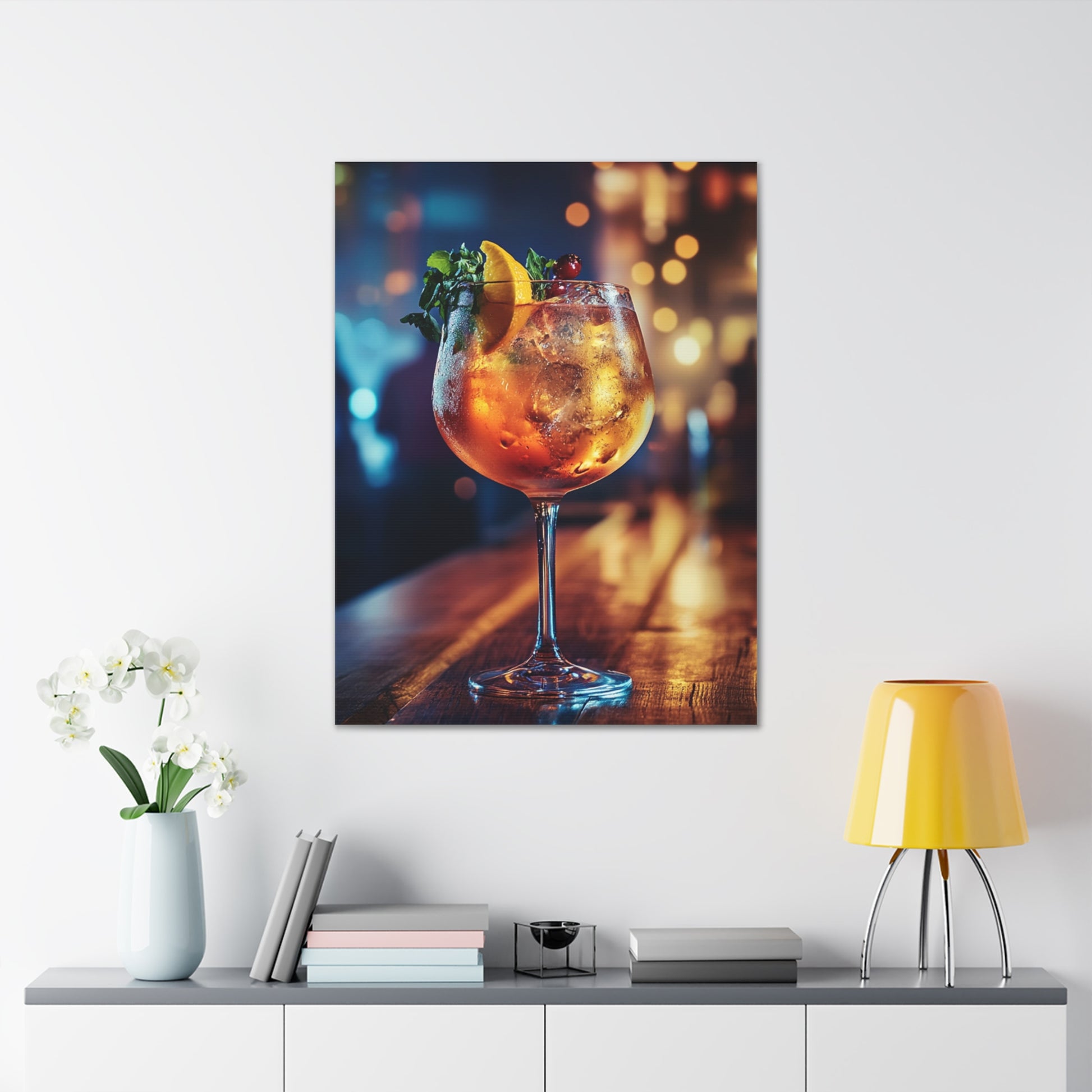 Printed on high-quality canvas and expertly stretched over a sturdy wooden frame, this piece not only adds a touch of sophistication to your decor but also serves as a daily reminder of the joy found in mixology. The blurred bokeh background enhances the focal point of the drink, creating a warm and inviting ambiance that draws the eye.