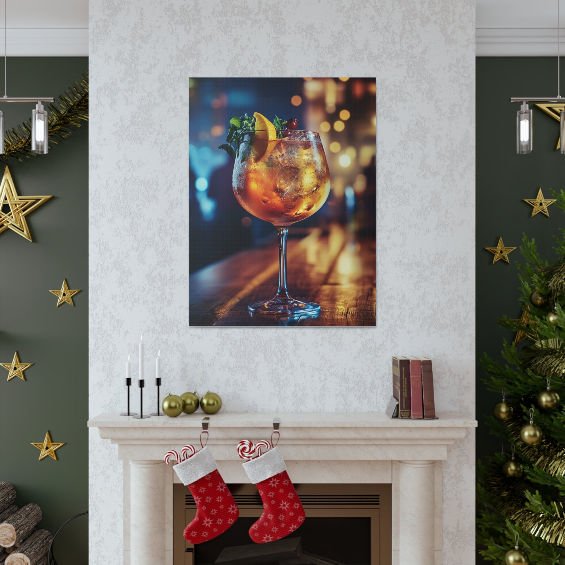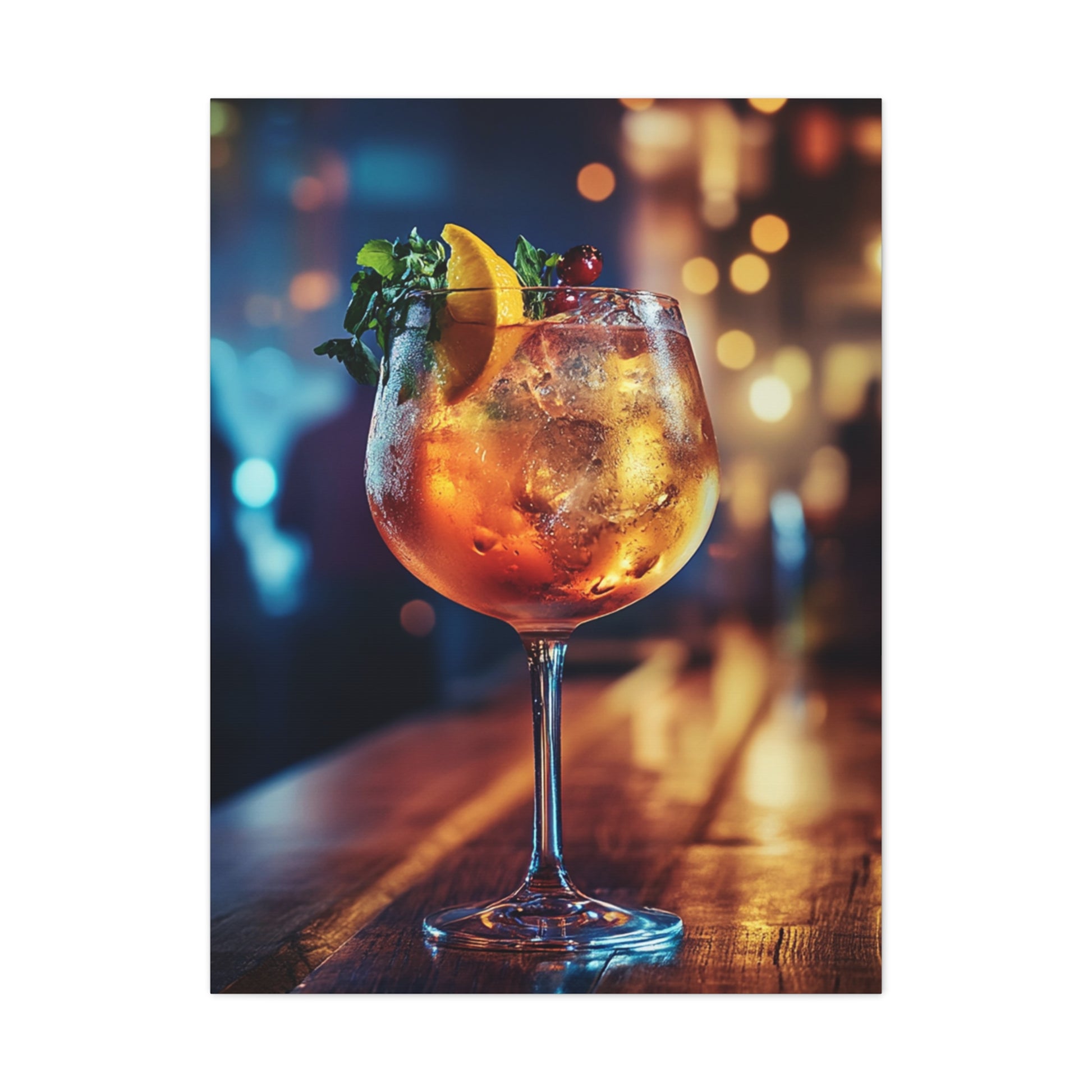 Elevate your space with our stunning 30" x 40" Cocktail Canvas Print. This vibrant artwork captures the essence of a perfectly crafted cocktail, complete with a refreshing garnish of citrus and herbs. The rich colors and glistening ice evoke the lively atmosphere of a bustling bar, making it an ideal centerpiece for your home, kitchen, or bar area.