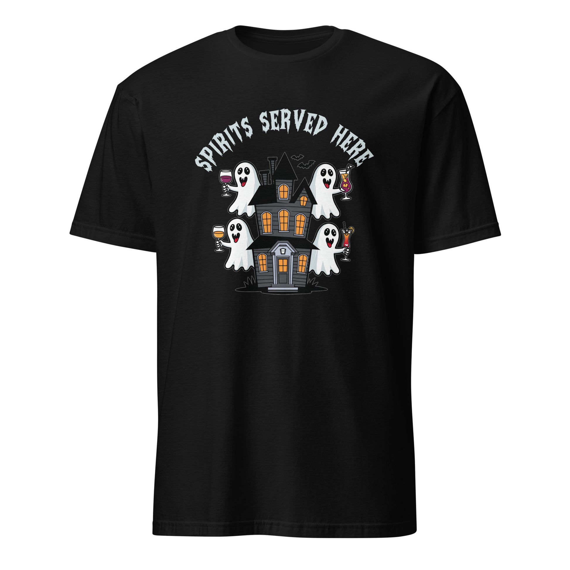 Raise a toast to the spooky season with our "Spirits Served Here" Halloween Bartender Tee! This playful design features a haunted house surrounded by cheerful ghost bartenders, each holding a different drink, ready to serve up some supernatural fun. Perfect for bartenders who love to get into the Halloween spirit—literally—this tee is sure to be a crowd-pleaser whether you’re behind the bar or just enjoying the festivities.