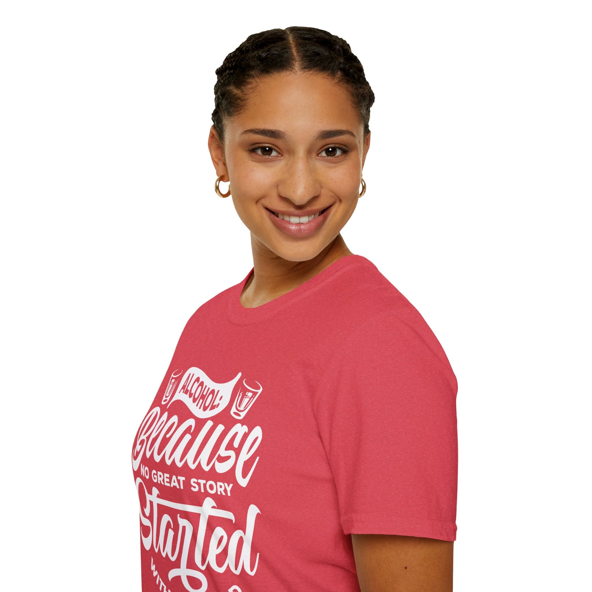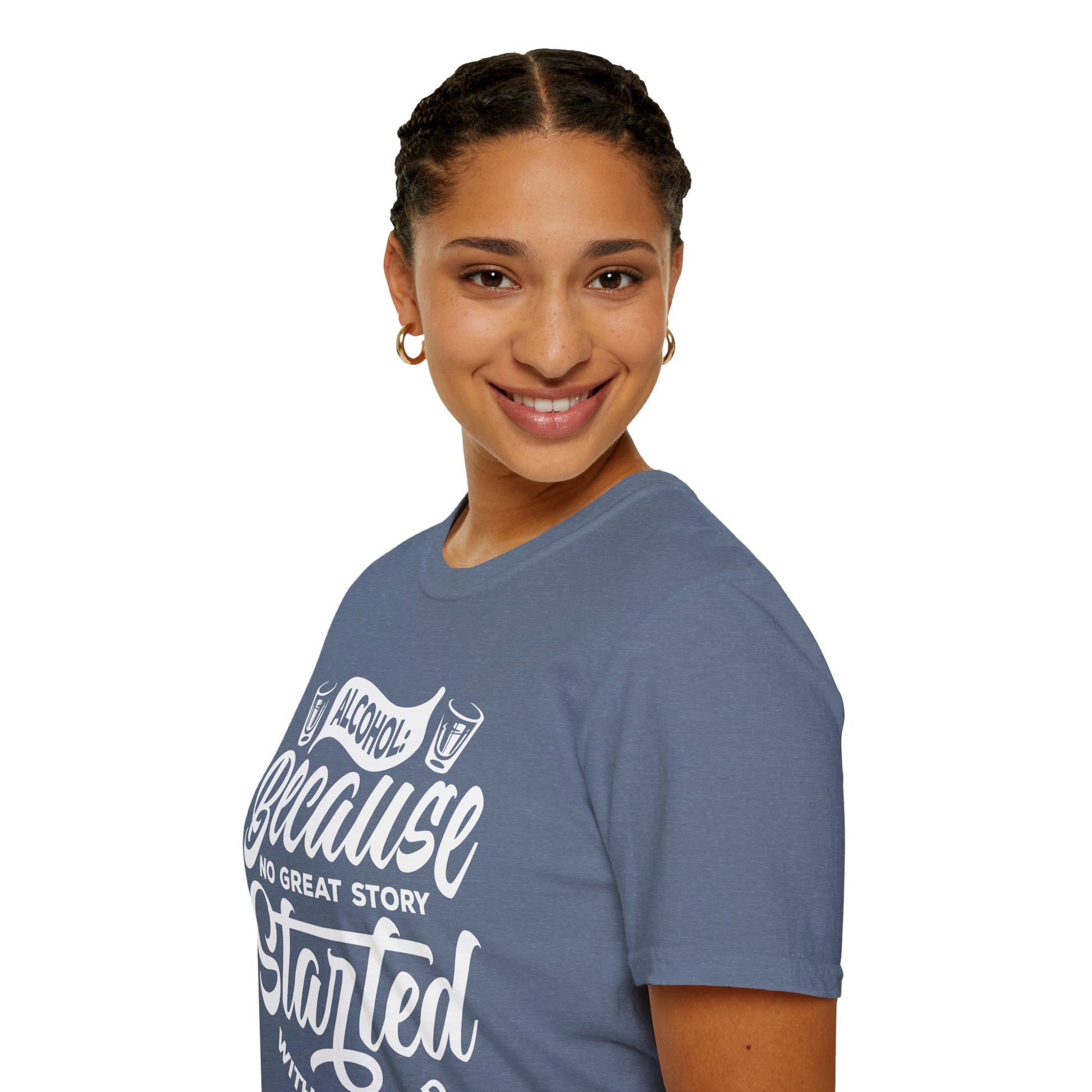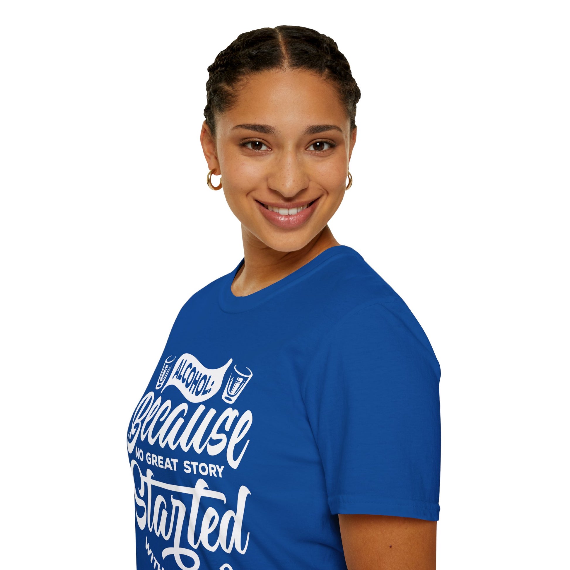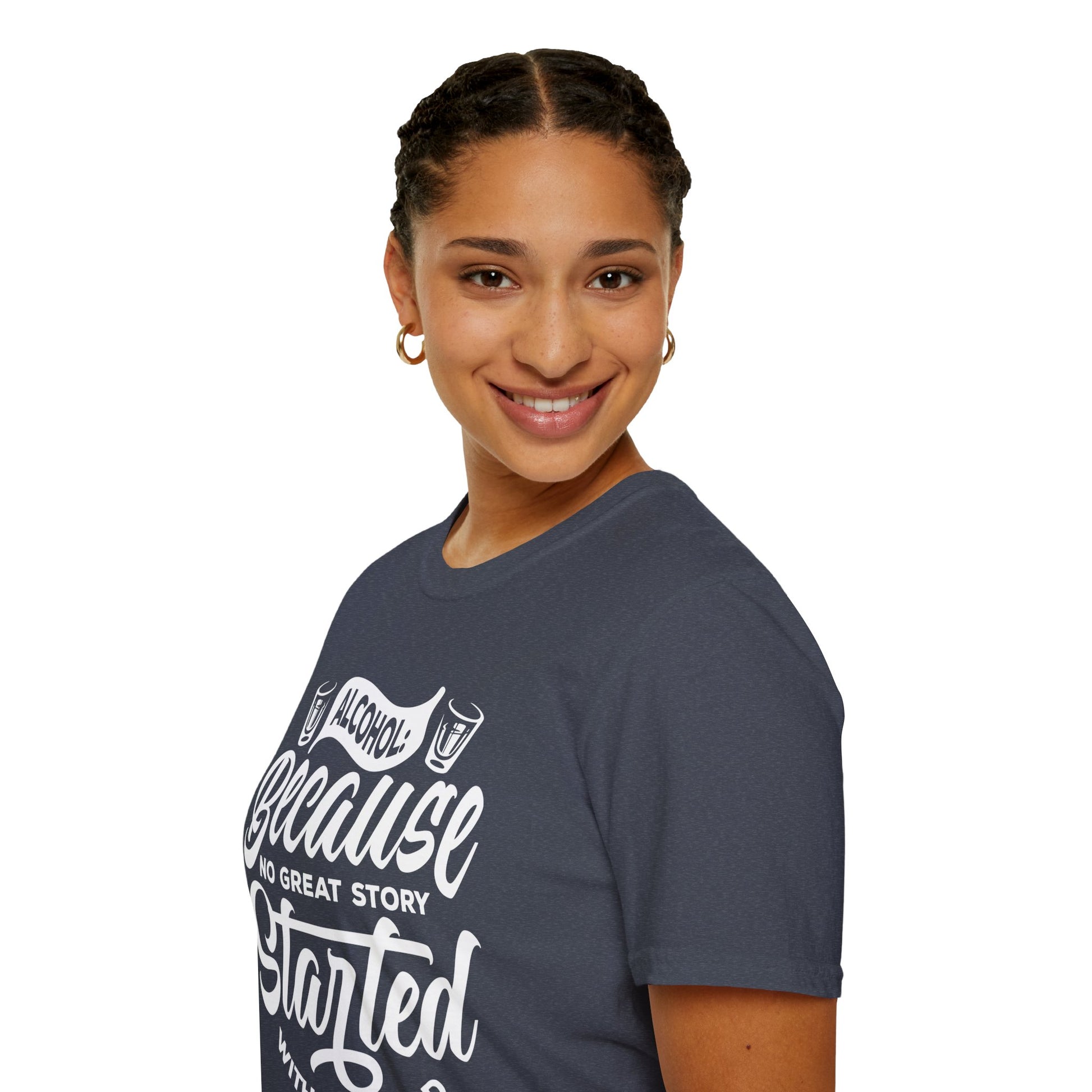The best stories start with a drink, not a salad. Our 'Alcohol, Because No Great Story Started with Salad' tee is perfect for bartenders who mix great cocktails and keep the conversation flowing. Comfort and style, whether behind the bar or out on the town.