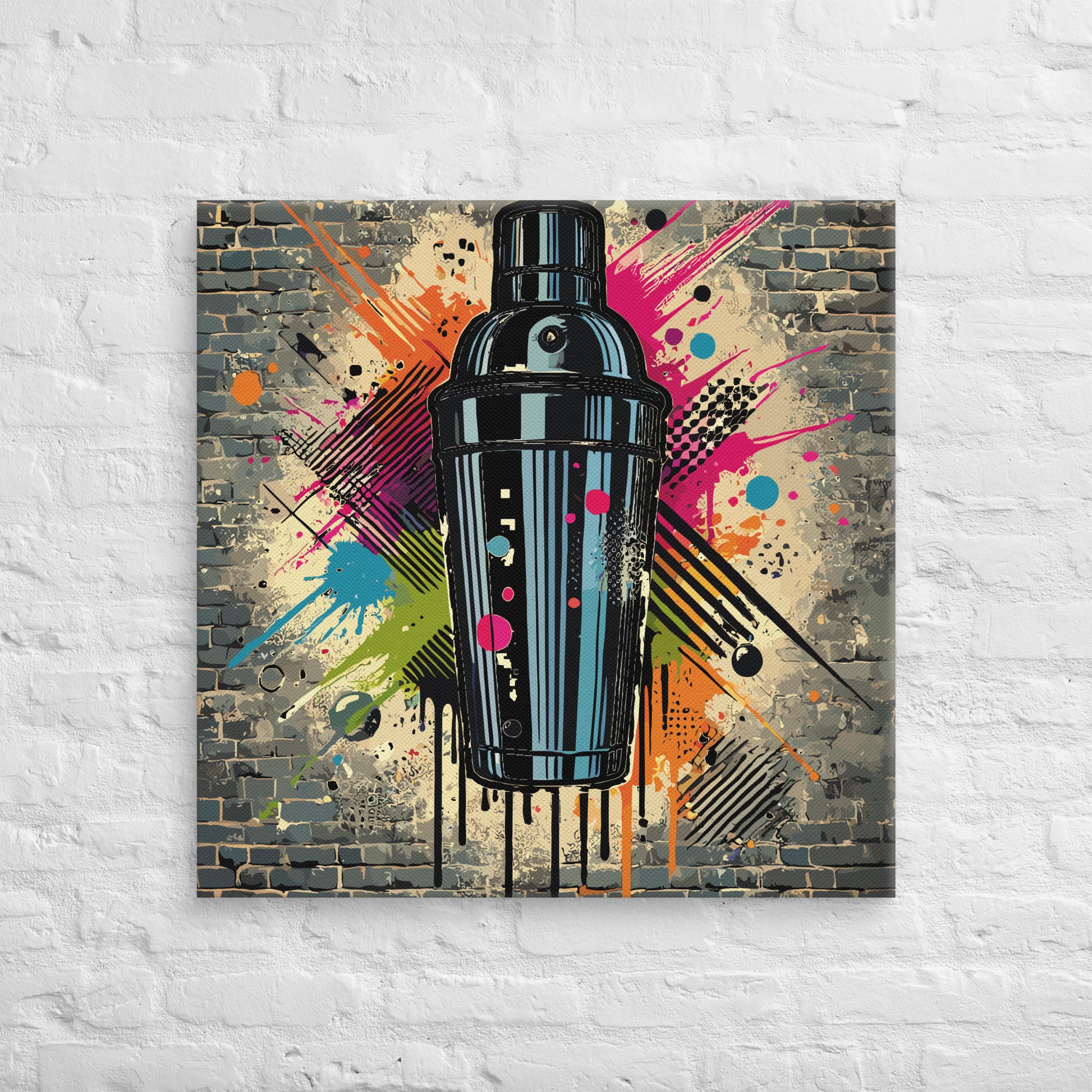 Bring the energy and vibe of the bar scene into your space with our "Urban Shaker Splash" canvas print. This 30" x 30" piece features a sleek cocktail shaker splashed against an explosion of vibrant colors and graffiti-style strokes, set against a raw brick wall backdrop. It's the perfect statement piece for bartenders, cocktail enthusiasts, and anyone looking to add a pop of personality to their decor. Printed on high-quality canvas, this artwork is ready to hang and instantly transforms any room into a lively mixology haven.