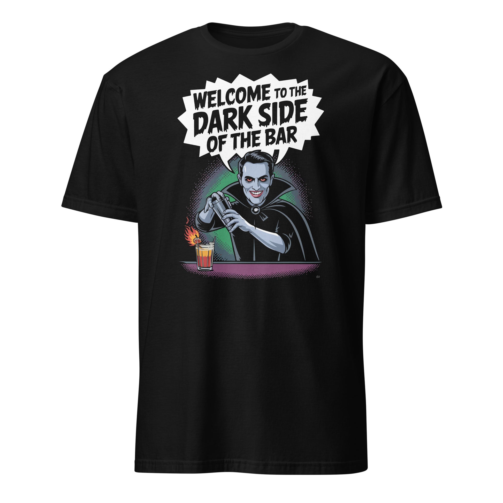 Embrace the night and step into the shadows with our "Welcome to the Dark Side of the Bar" Halloween Bartender Tee! This chilling design features a sinister vampire bartender shaking up a flaming cocktail, inviting you to experience the darker side of mixology. Perfect for bartenders who love to add a bit of edge to their craft, this tee is sure to be a hit whether you’re working the bar or simply enjoying the Halloween festivities.